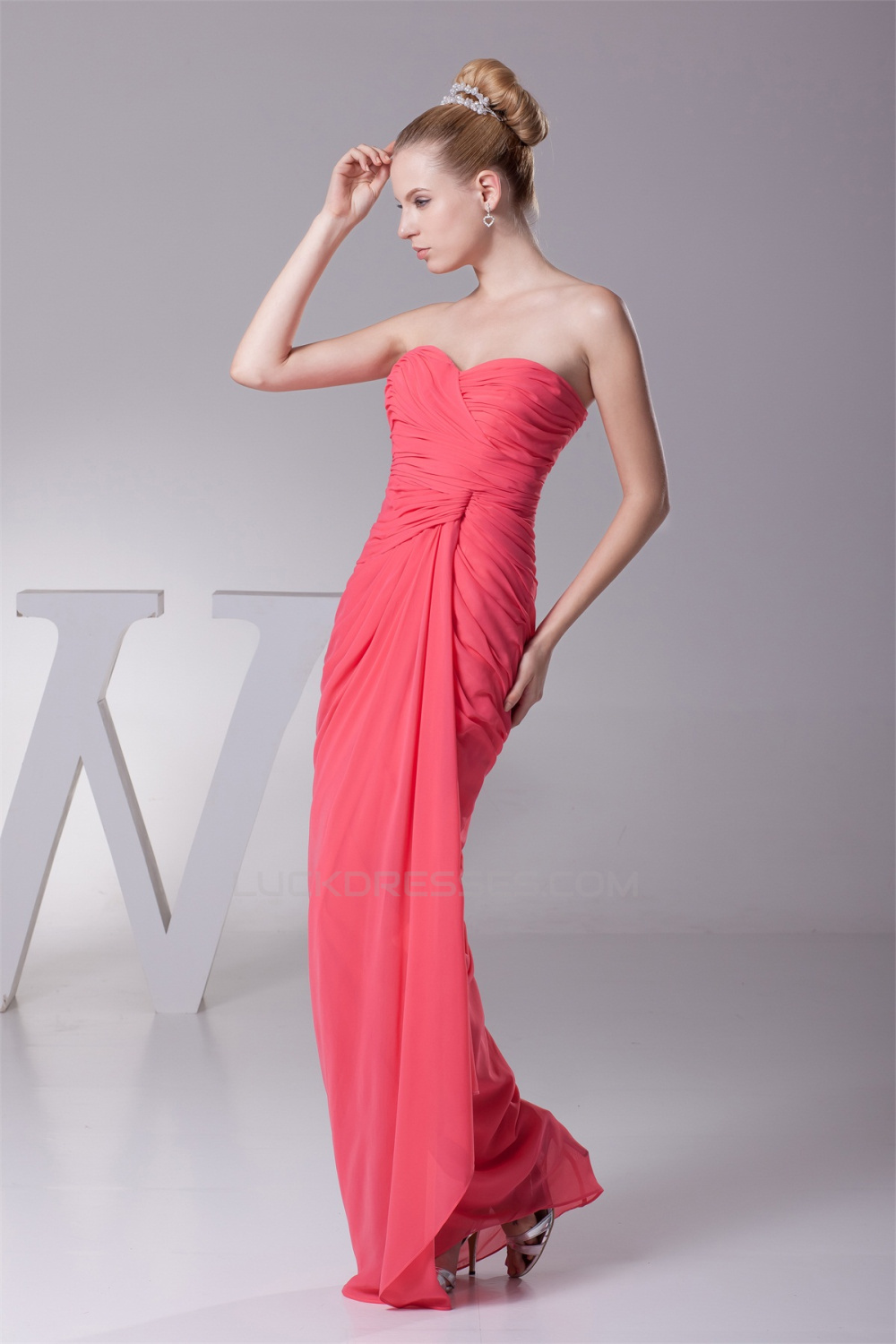 Sweetheart Sheath/Column Chiffon Long Bridesmaid Dresses 02010242