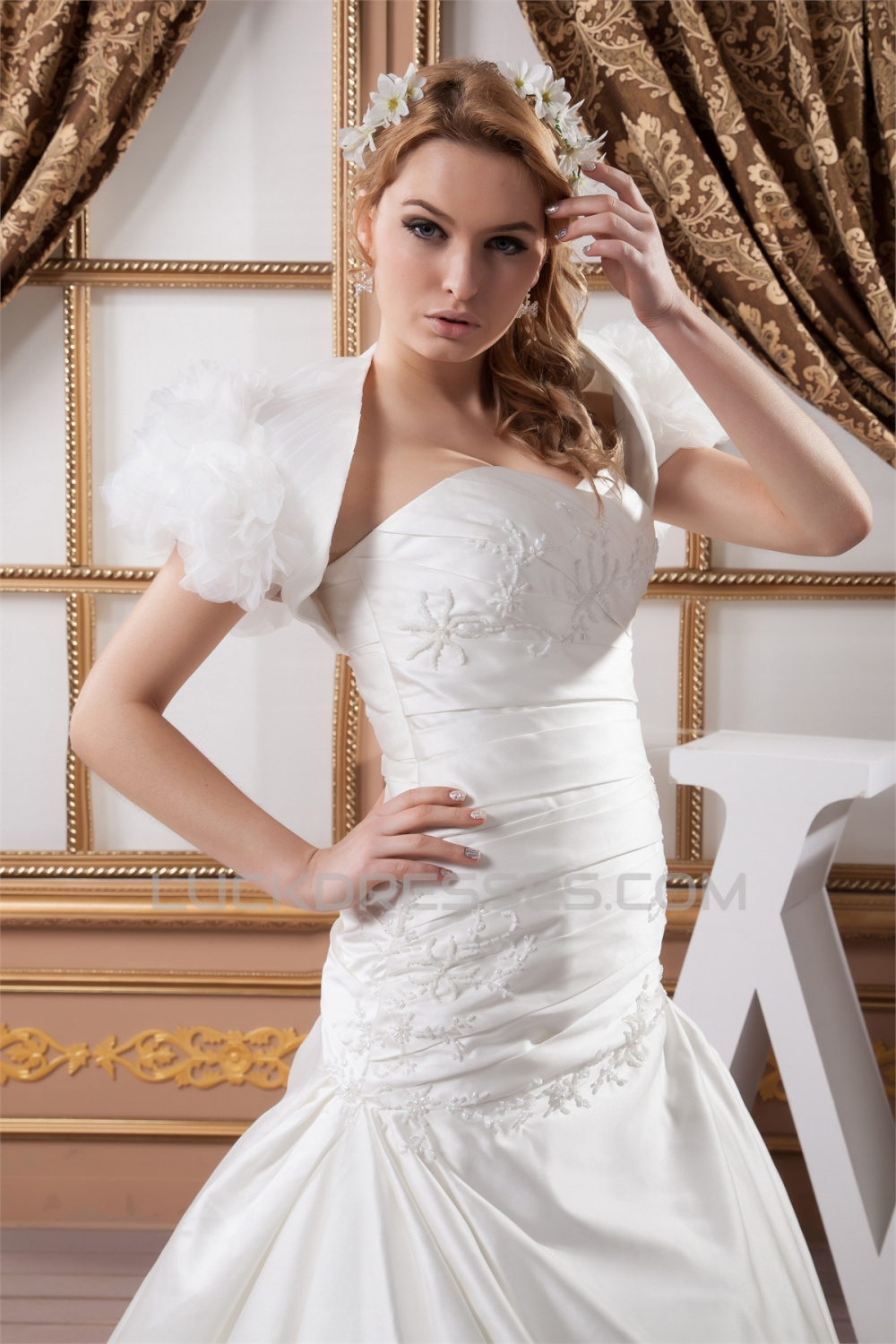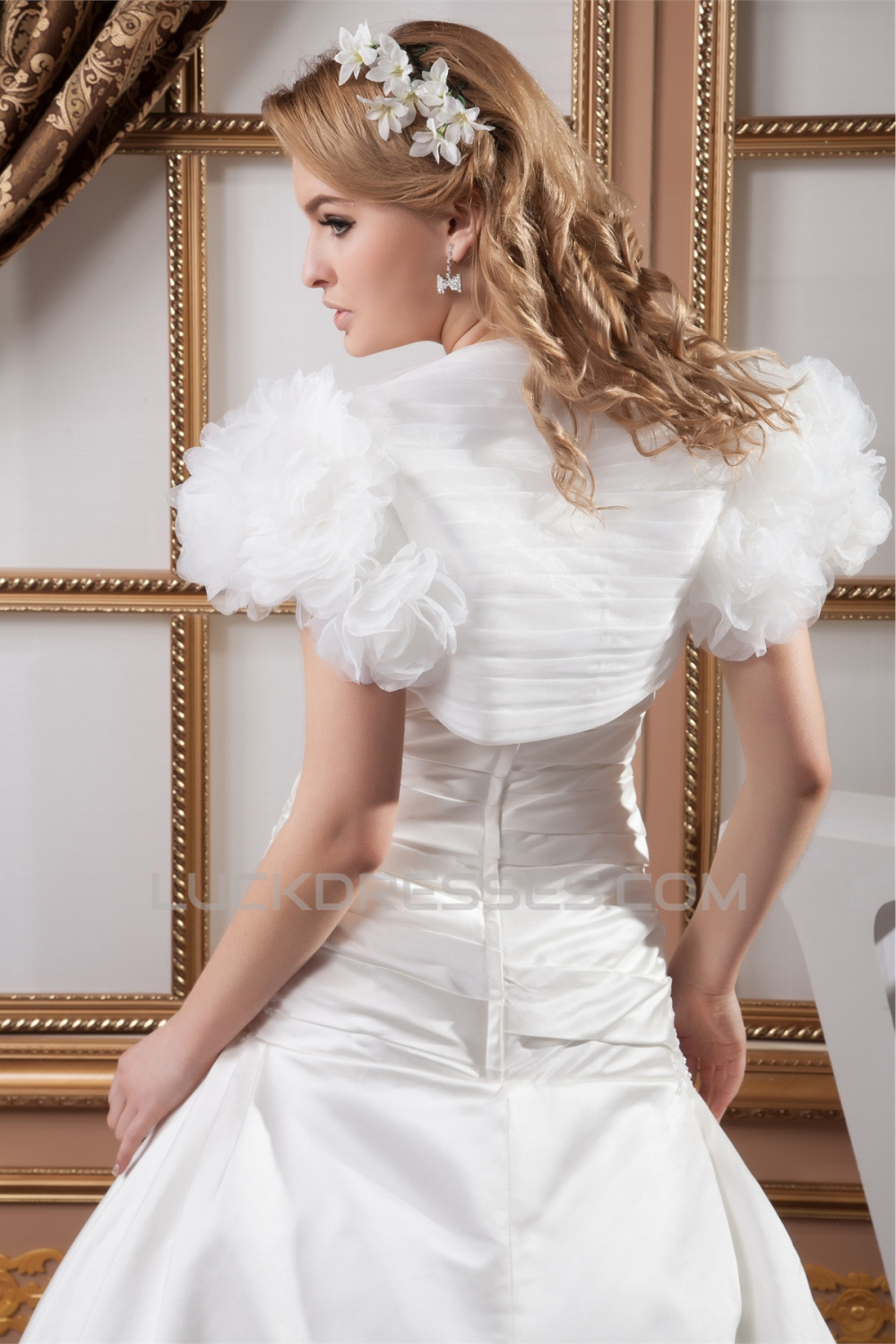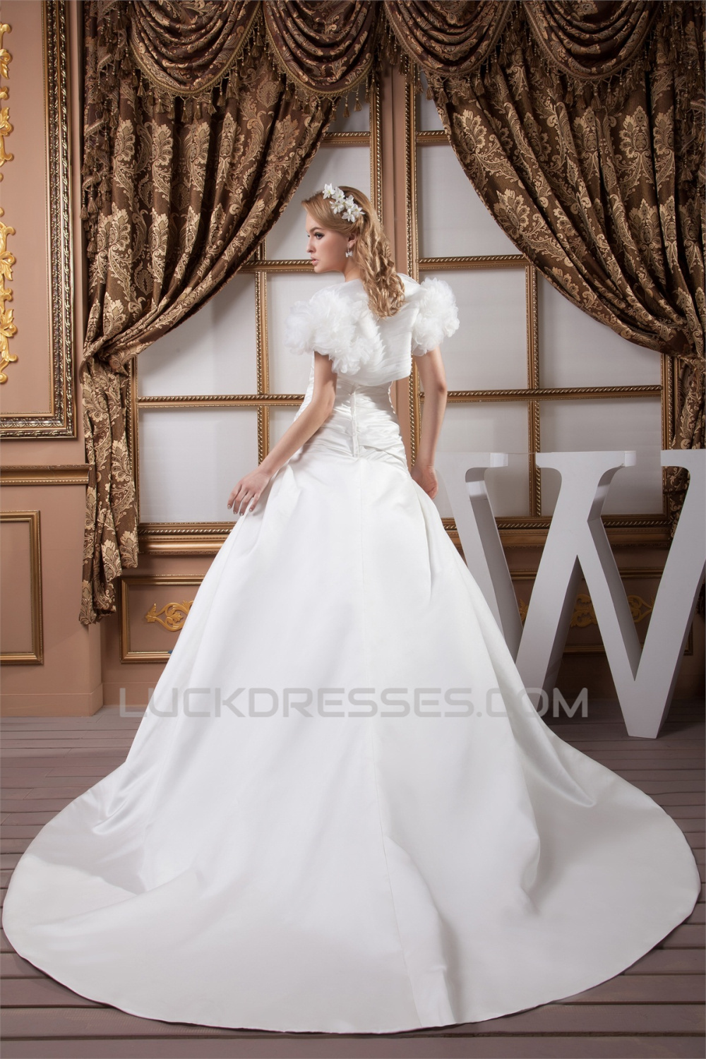 Sweetheart Short Sleeve Satin A-Line Beaded Beautiful Wedding Dresses 2031024