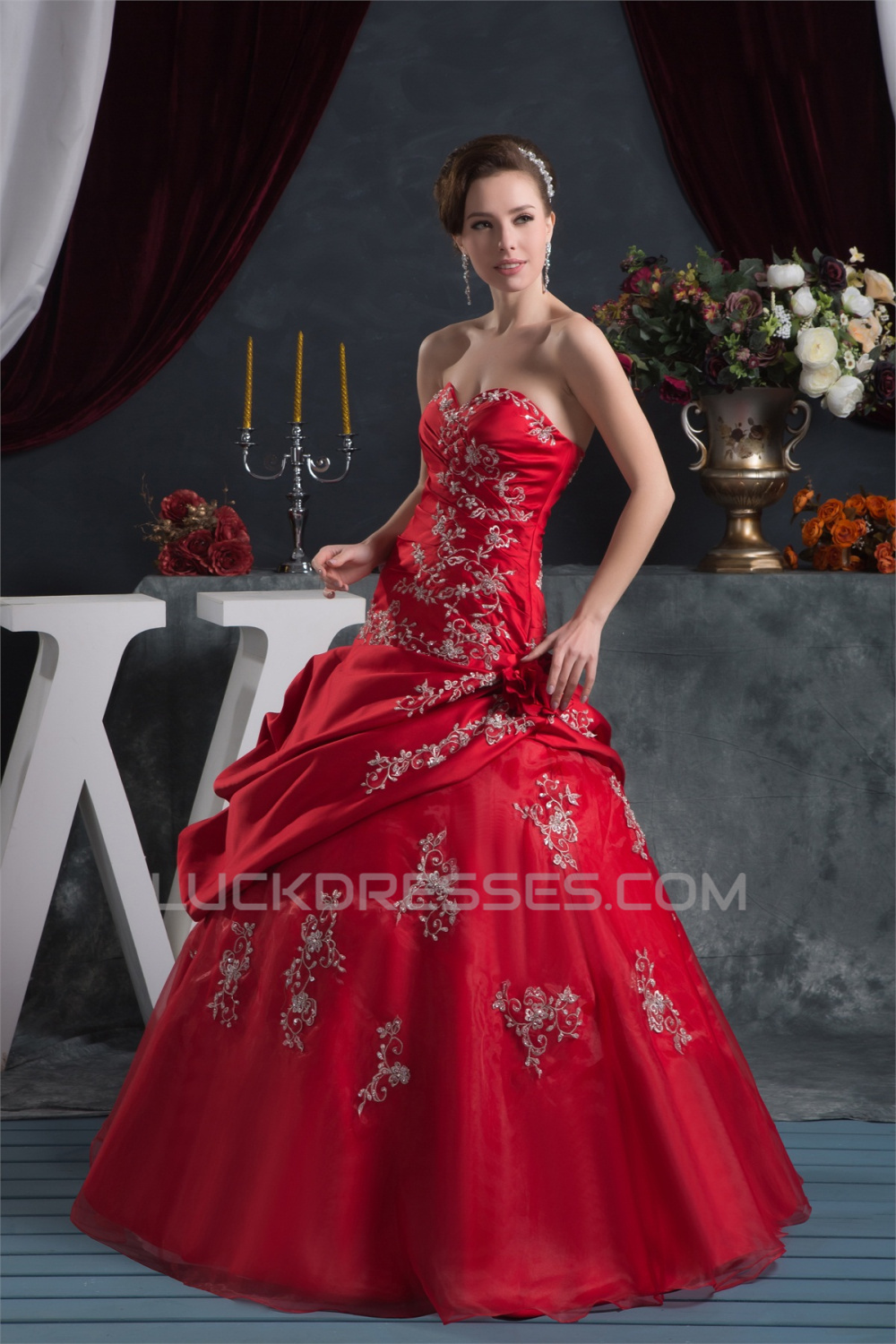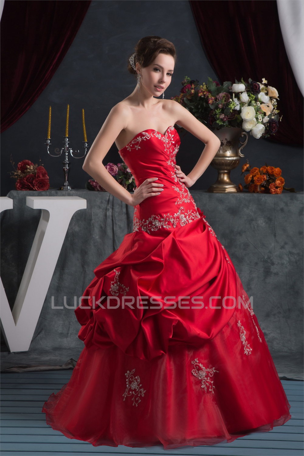 Sweetheart Sleeveless Floor-Length Ball Gown Red Wedding Dresses 2031028