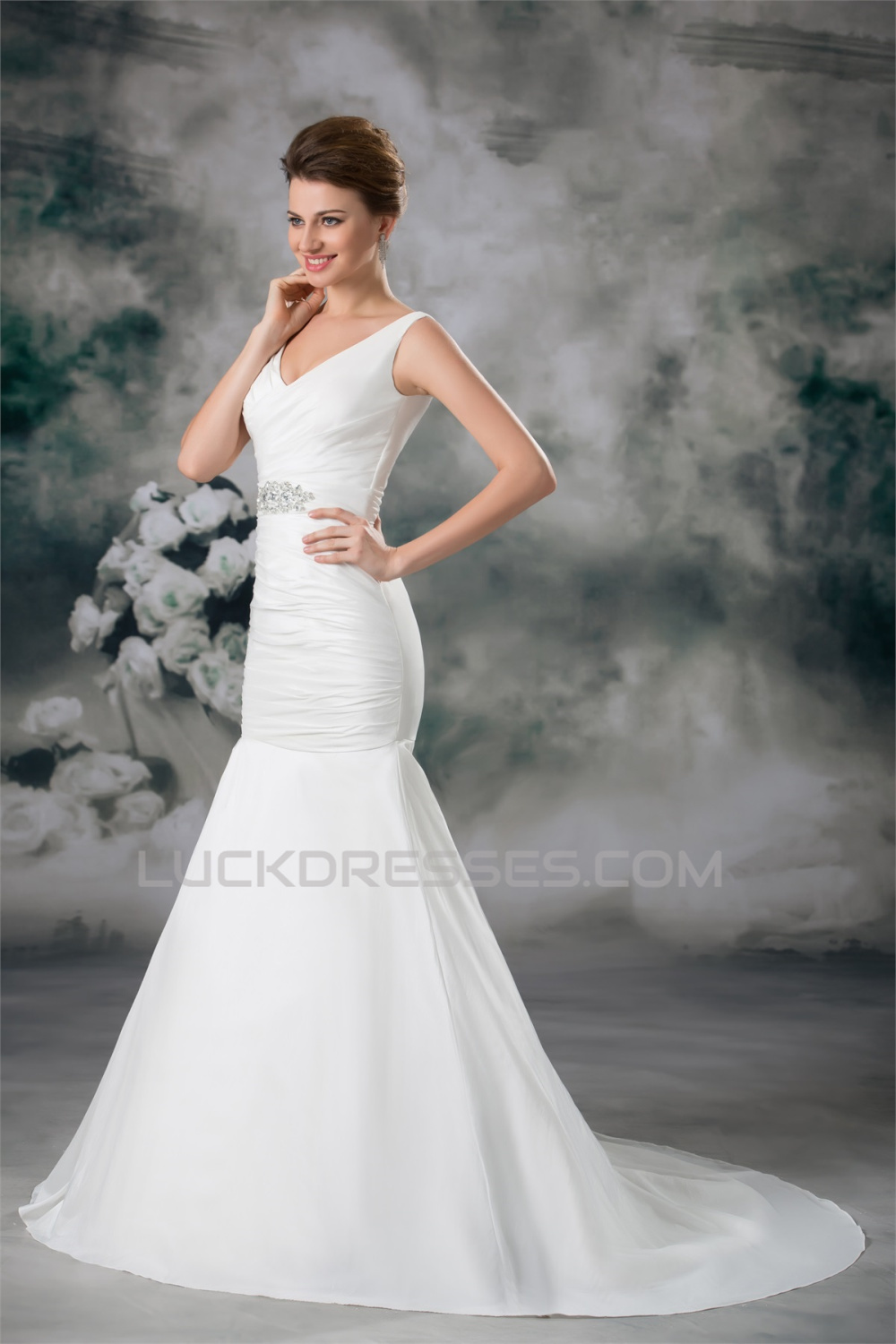 Taffeta Mermaid/Trumpet V-Neck Sleeveless Beaded Wedding Dresses 2031401