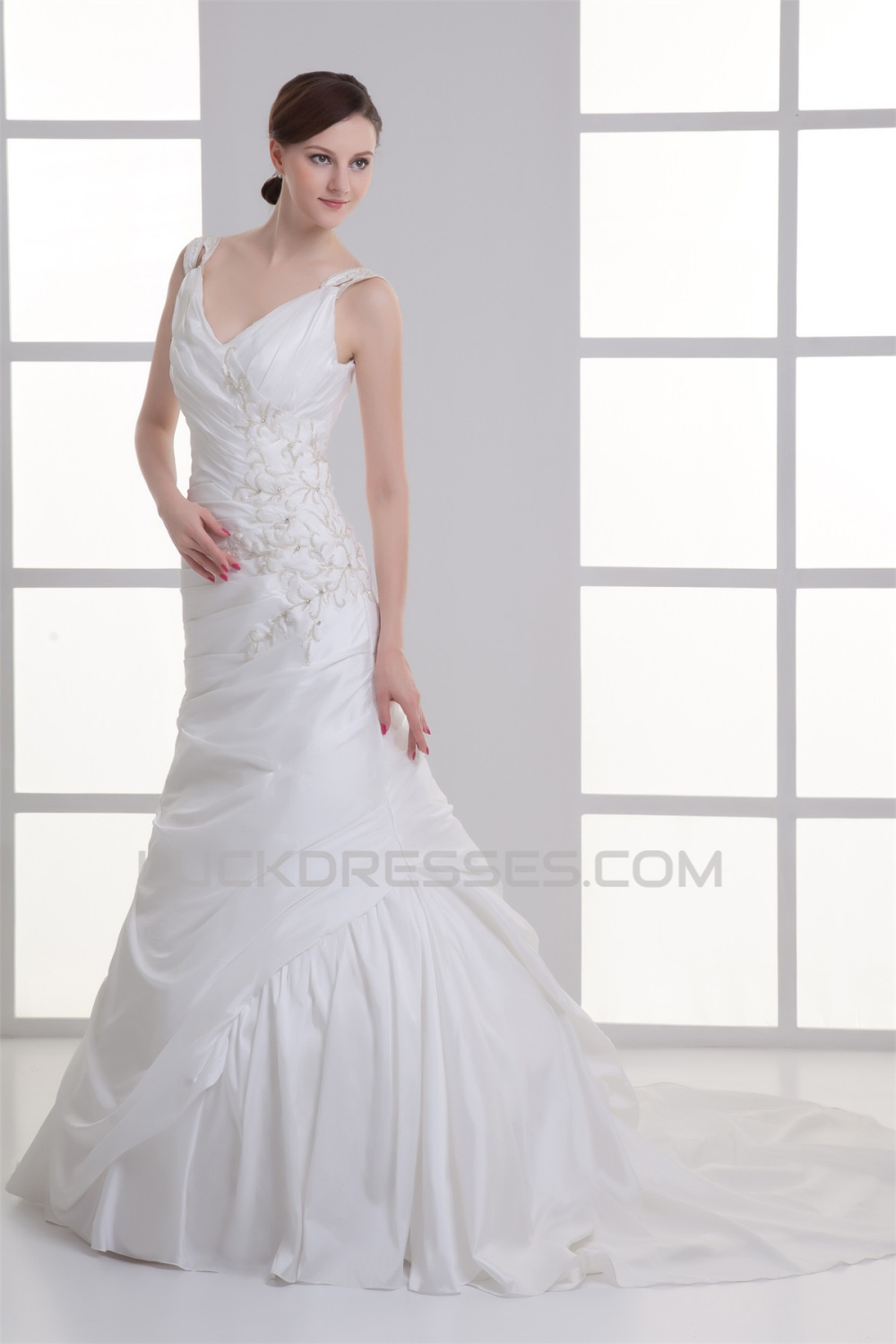Taffeta Sleeveless Mermaid/Trumpet V-Neck Beaded Wedding Dresses 2031403