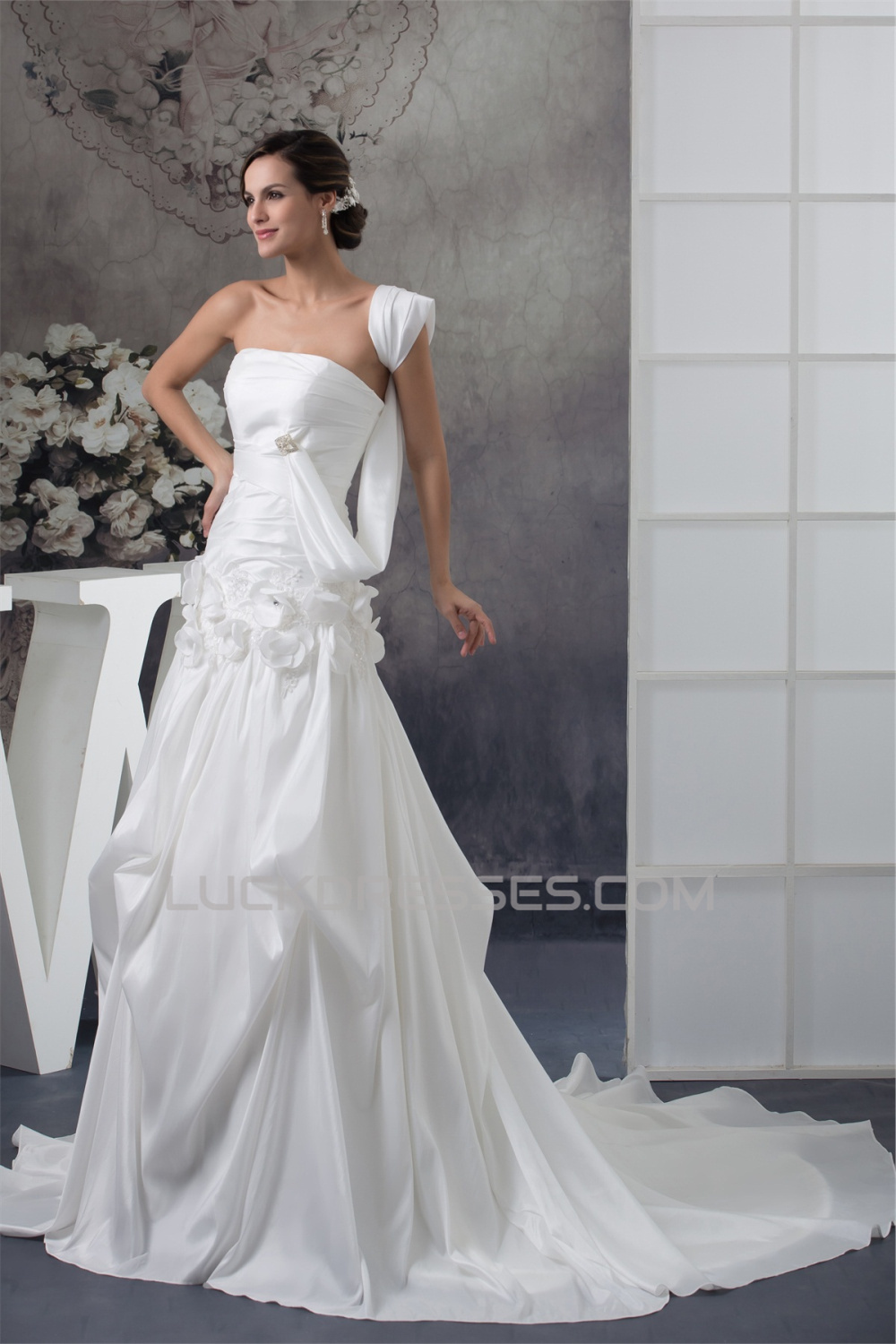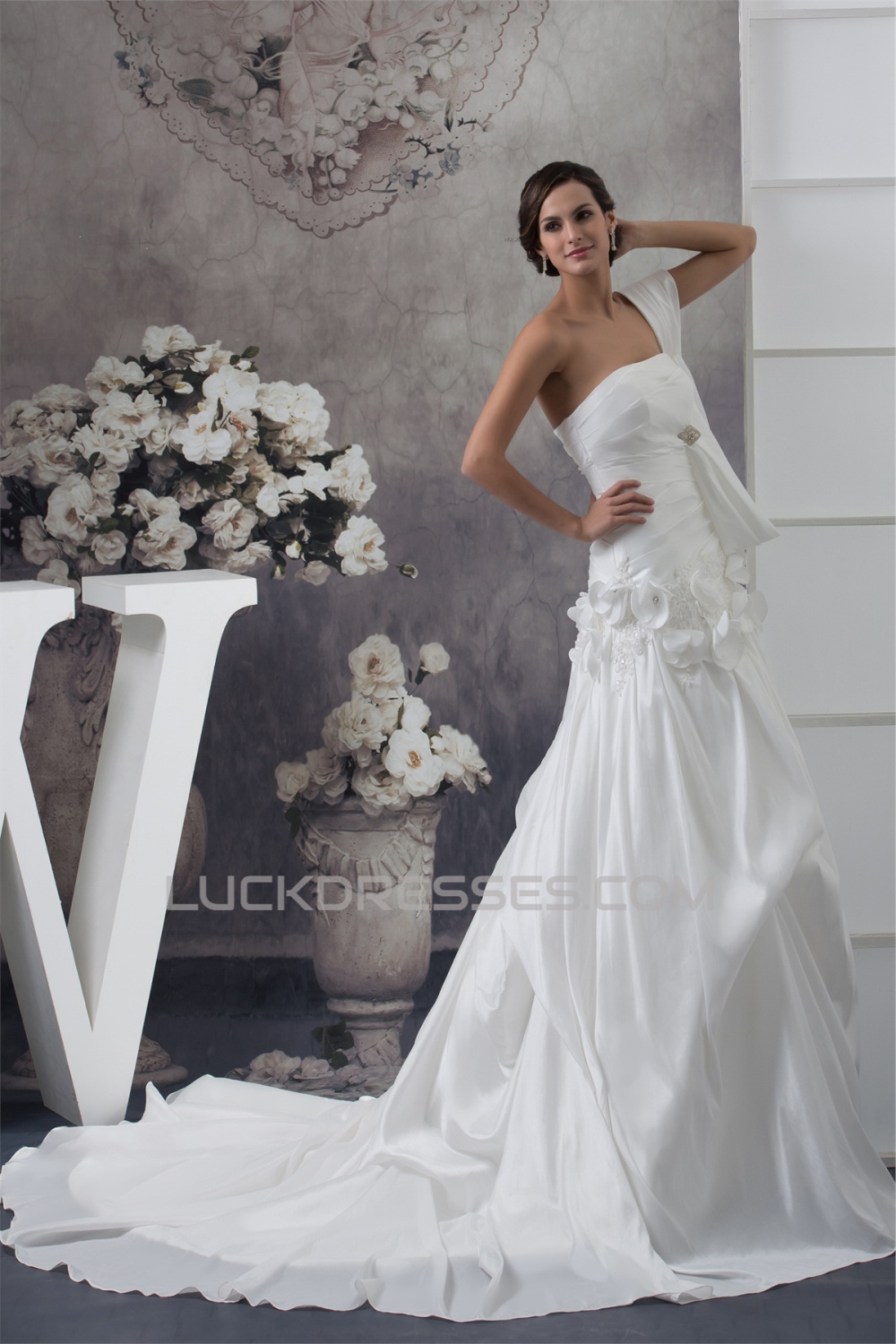 -50% Taffeta Strapless Sleeveless A-Line Chapel Train Wedding Dresses 2030500
