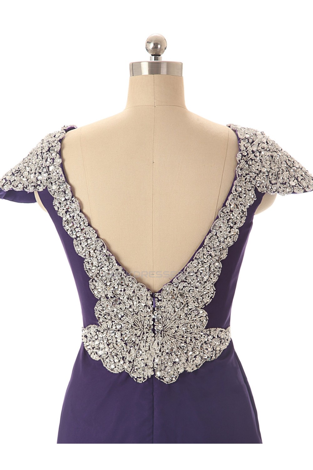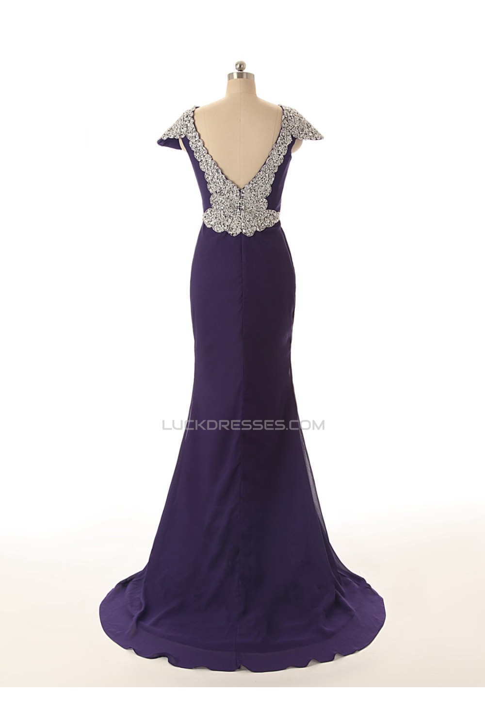 Trumpet/Mermaid Bateau Cap-Sleeve Long Chiffon Prom Evening Formal Dresses ED011593
