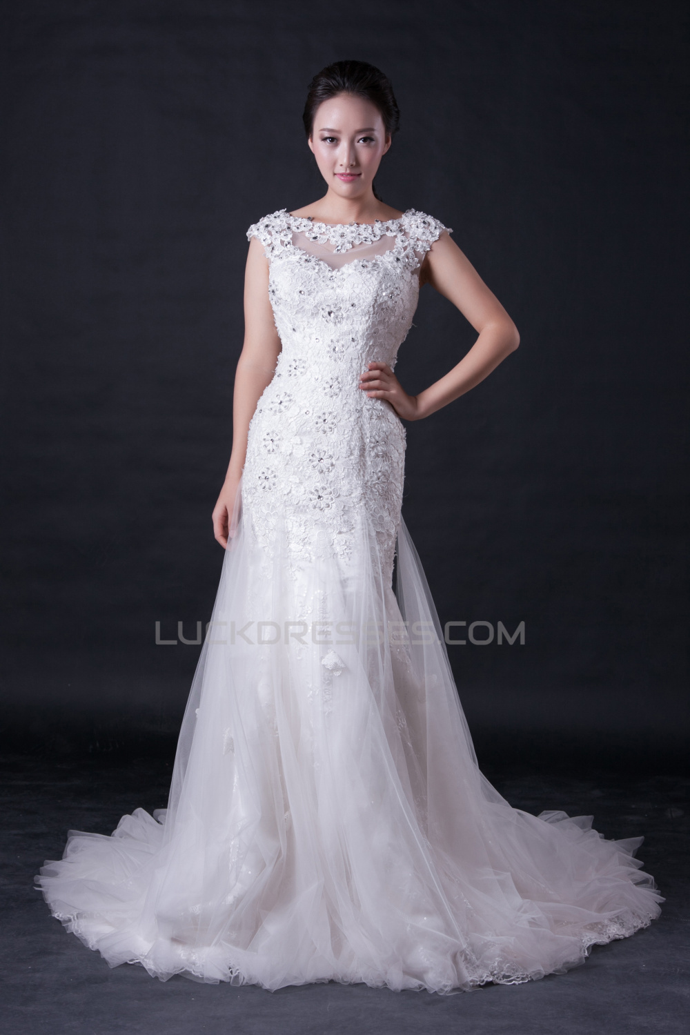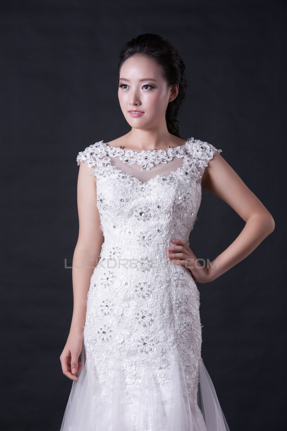 -60% Trumpet/Mermaid Beaded Lace Bridal Wedding Dresses WD010396