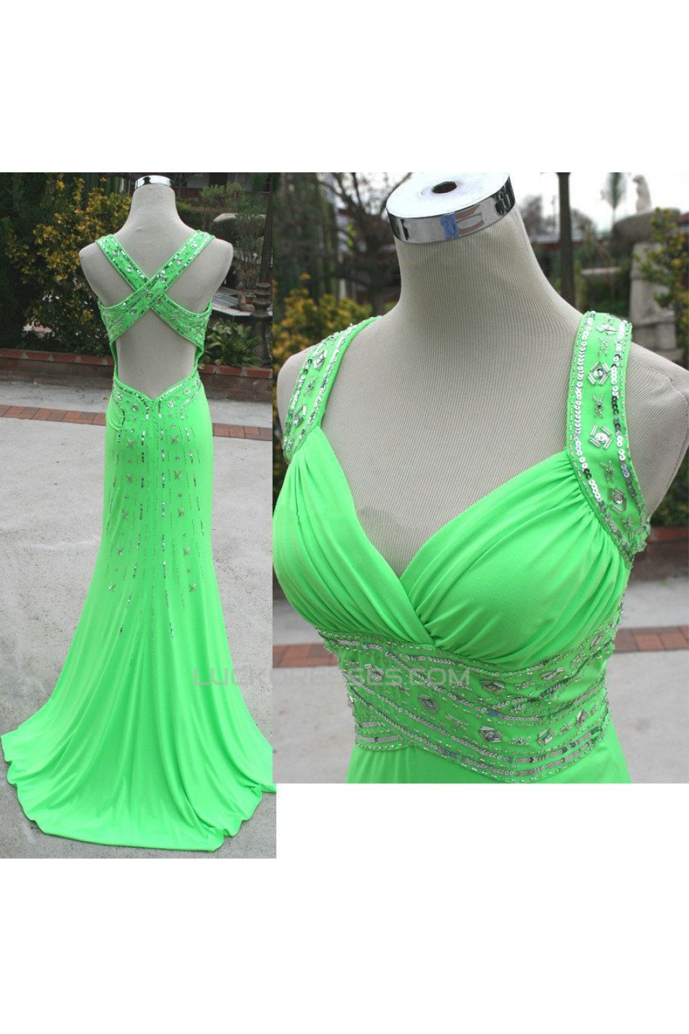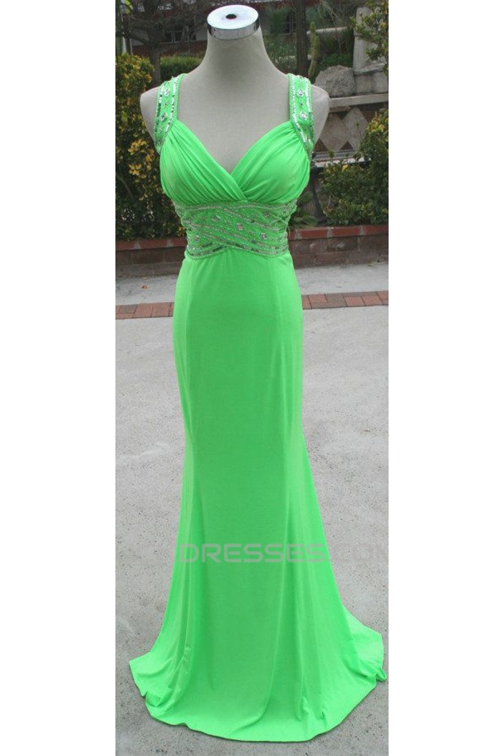 Trumpet/Mermaid Beaded Long Green Chiffon Prom Evening Formal Dresses ED011121