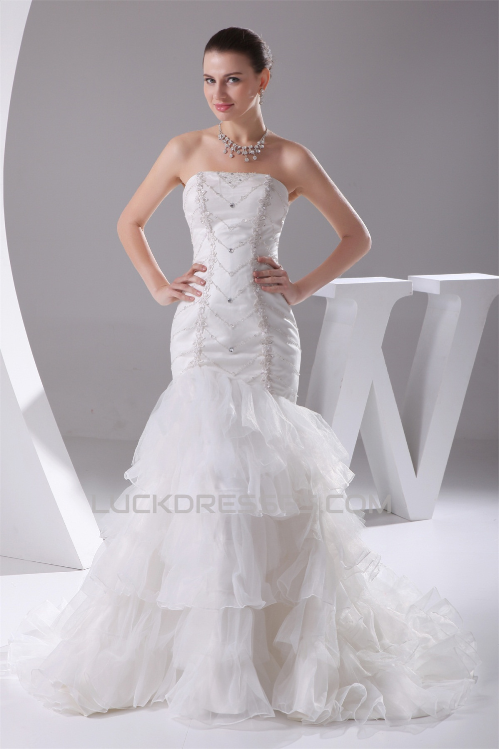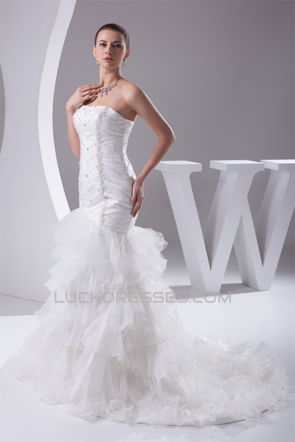 Trumpet/Mermaid Beaded Strapless Wedding Dresses 2030292
