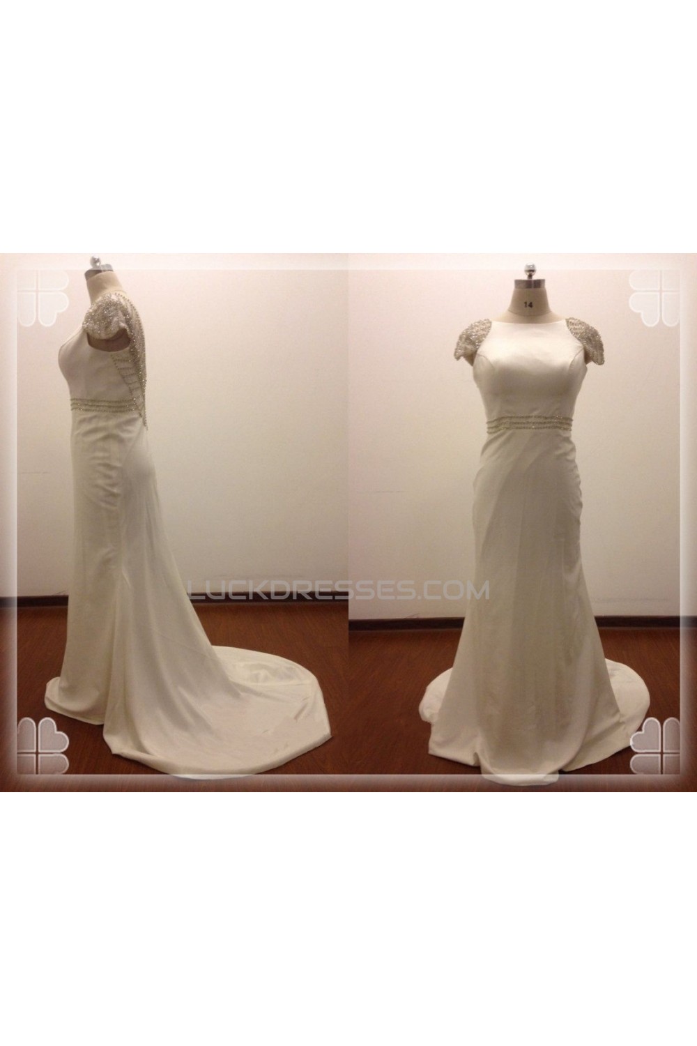 Trumpet/Mermaid Cap Sleeves Beaded Bridal Wedding Dresses WD010815