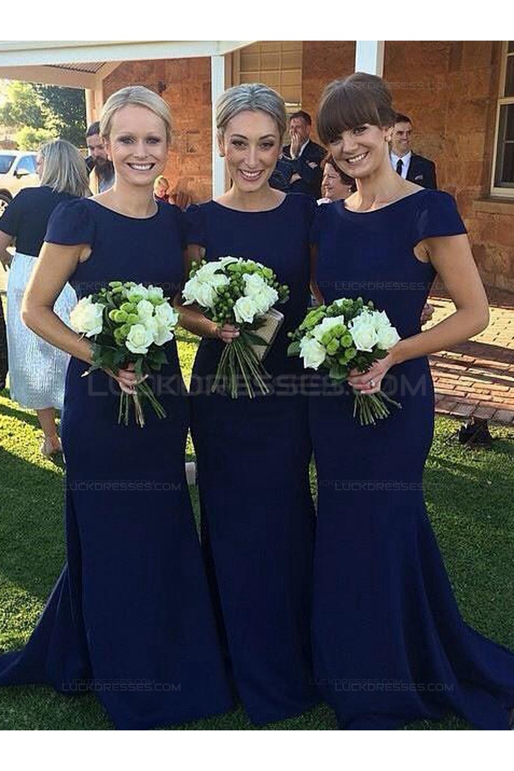 Trumpet/Mermaid Cap-Sleeves Long Blue Wedding Party Dresses Bridesmaid Dresses 3010043