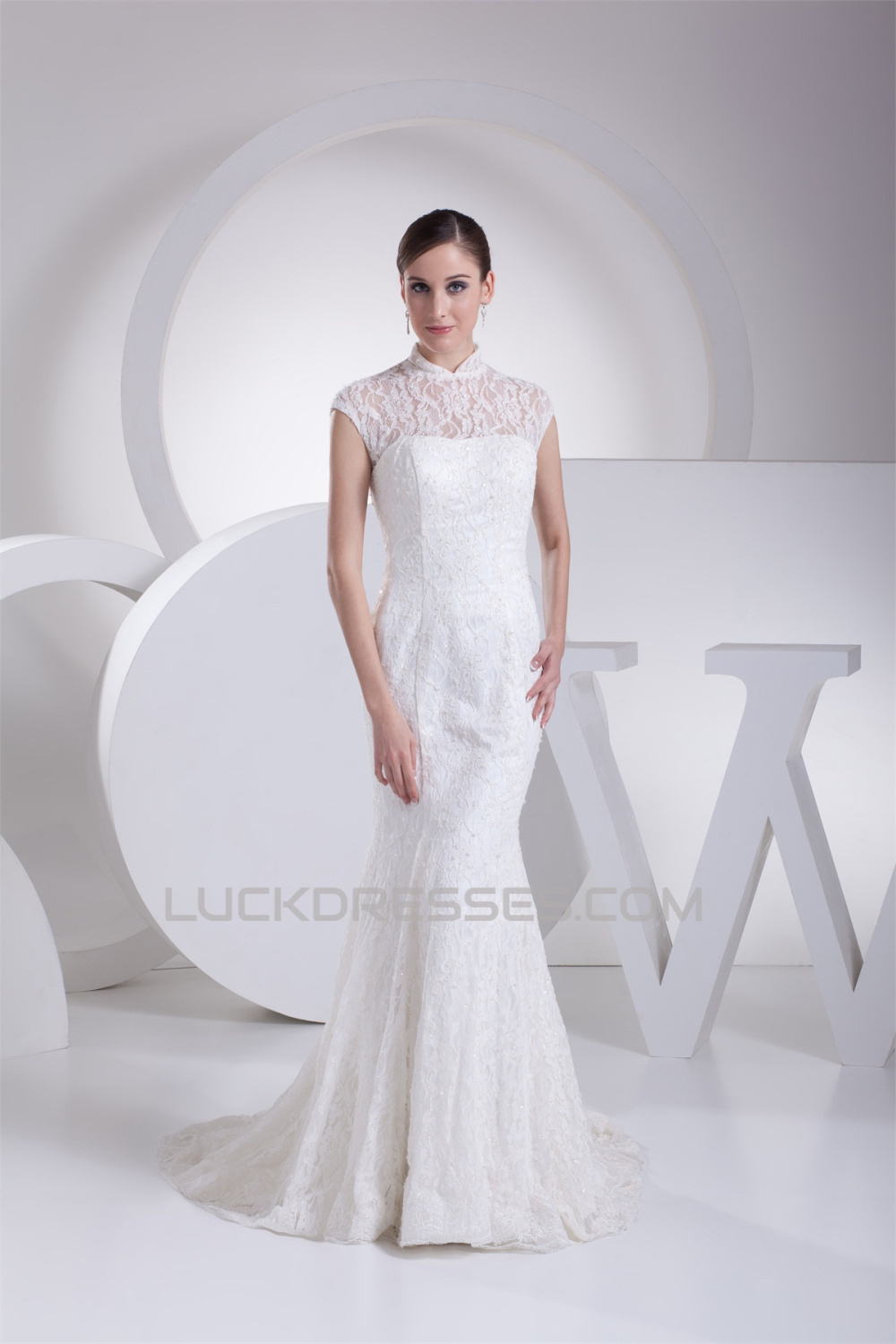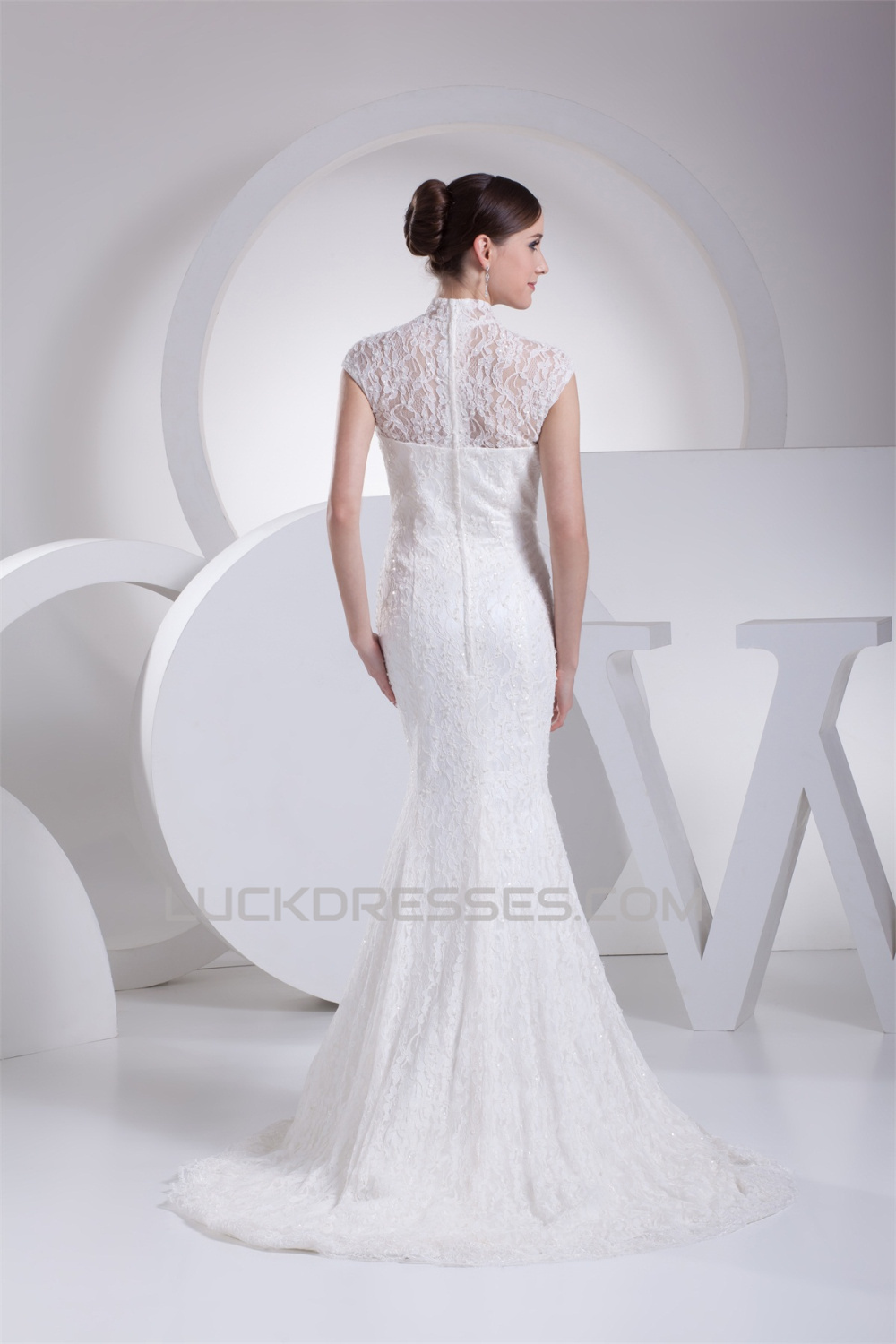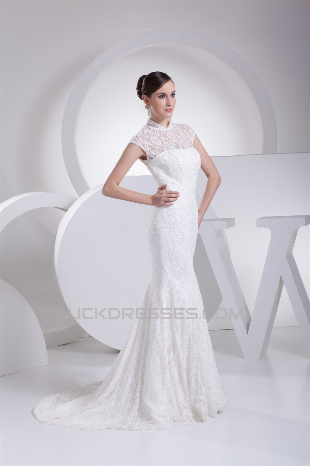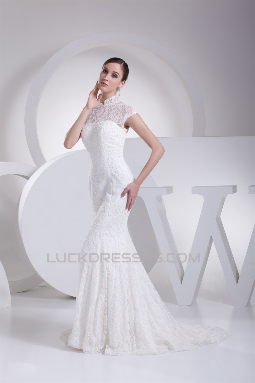 Trumpet/Mermaid High-Neck Sleeveless Lace Wedding Dresses 2030177