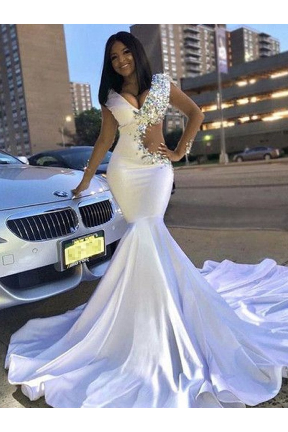 Trumpet/Mermaid Long Beaded V Neck Prom Dresses Formal Evening Gowns 901869