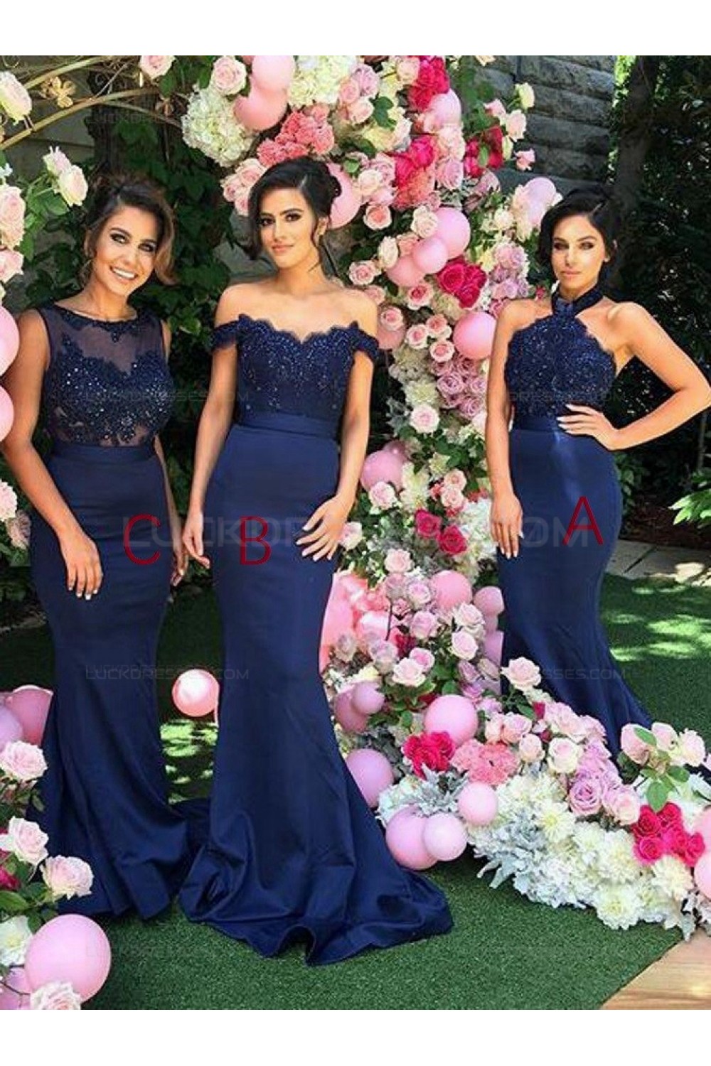 Trumpet/Mermaid Long Blue Lace Wedding Party Dresses Bridesmaid Dresses 3010051