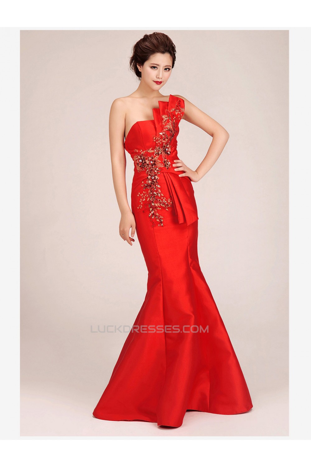 Trumpet/Mermaid Long Red Prom Evening Formal Dresses ED011243