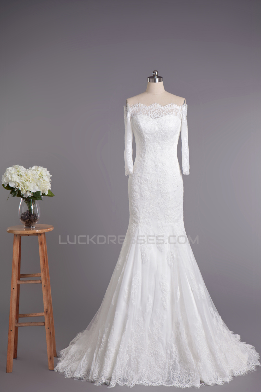 Trumpet/Mermaid Off the Shoulder 3/4 Sleeves Lace Bridal Wedding Dresses WD010418
