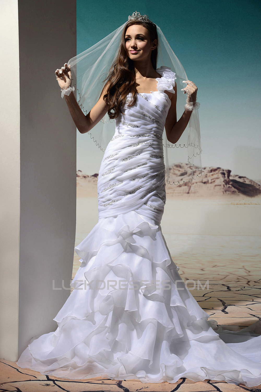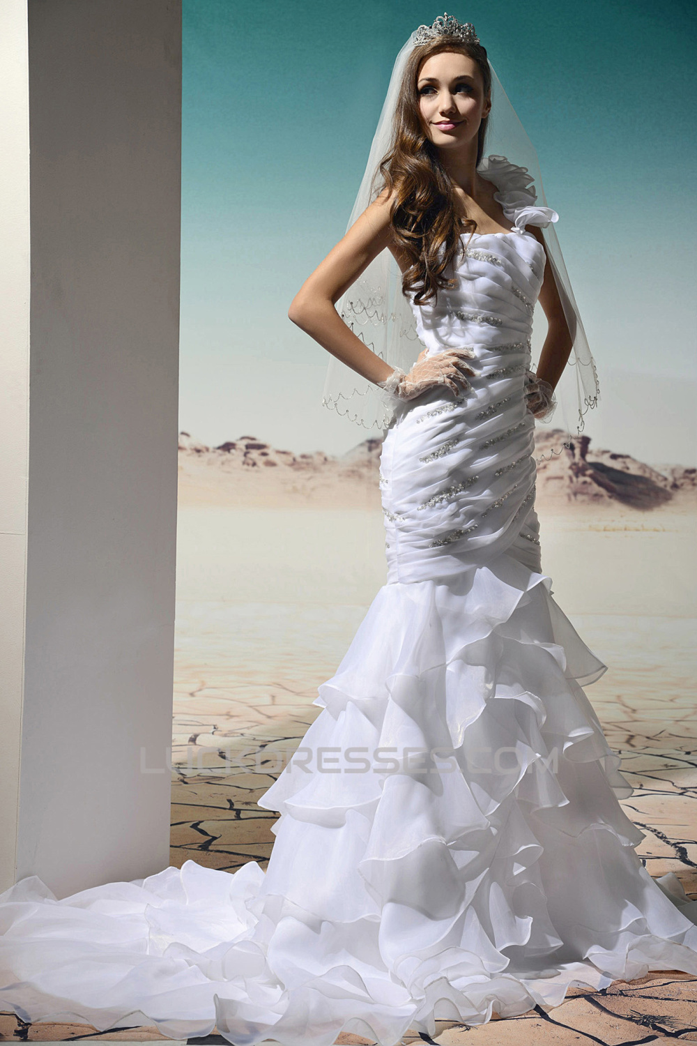 -50% Trumpet/Mermaid One-Shoulder Court Train Beaded Wedding Dresses 2031462