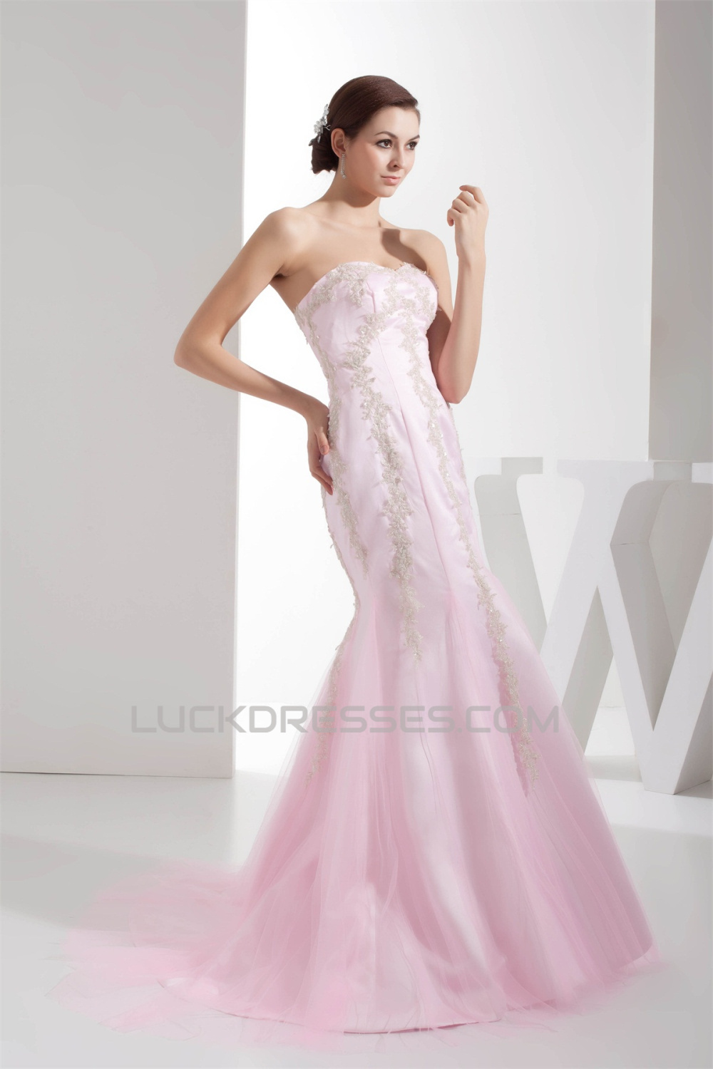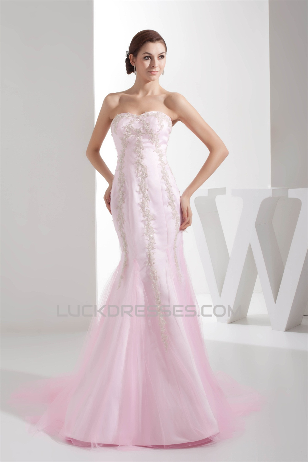 Trumpet/Mermaid Satin Lace Fine Netting Beading Wedding Dresses 2030273