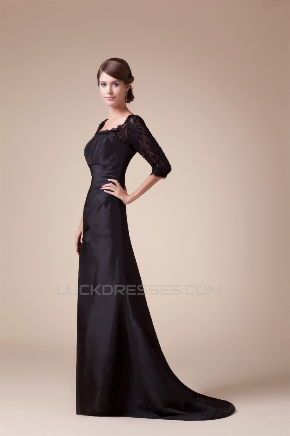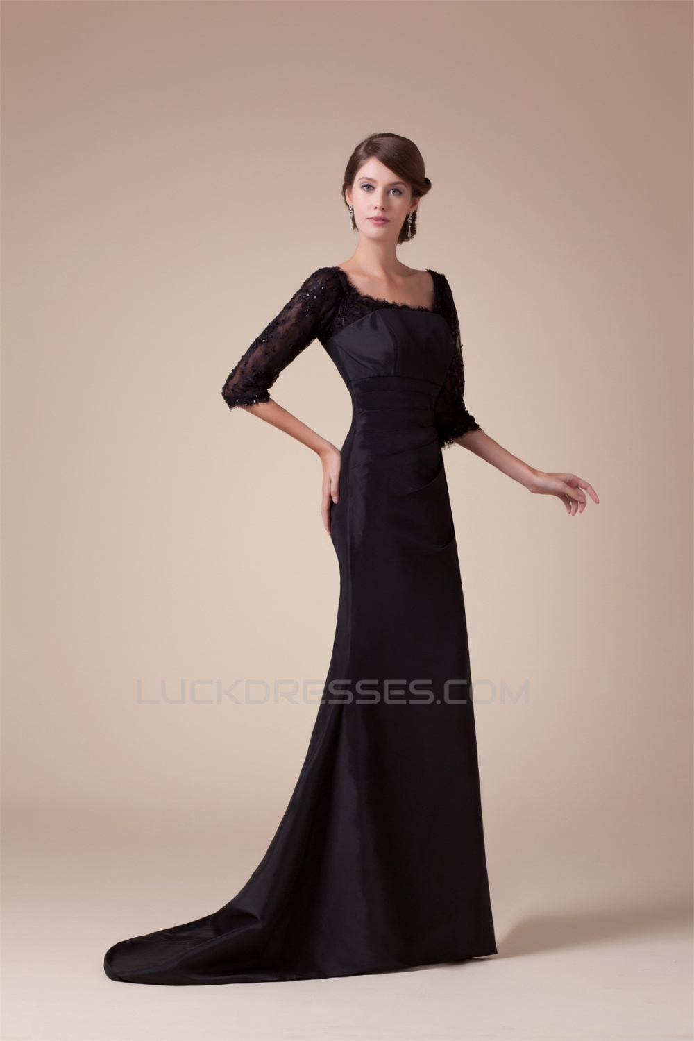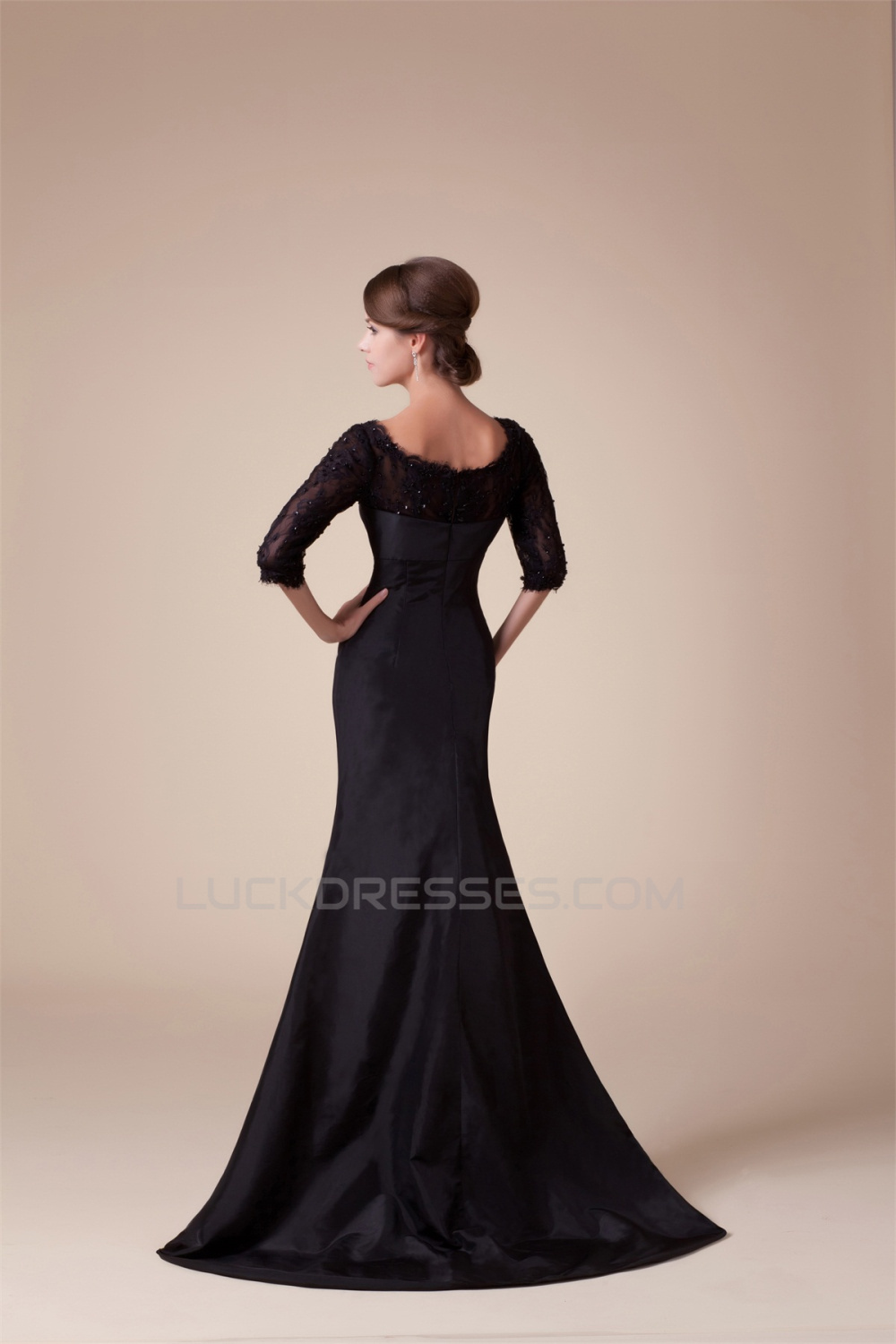 Trumpet/Mermaid Scoop Taffeta Lace 3/4 Length Puddle Train Mother of the Bride Dresses 2040069