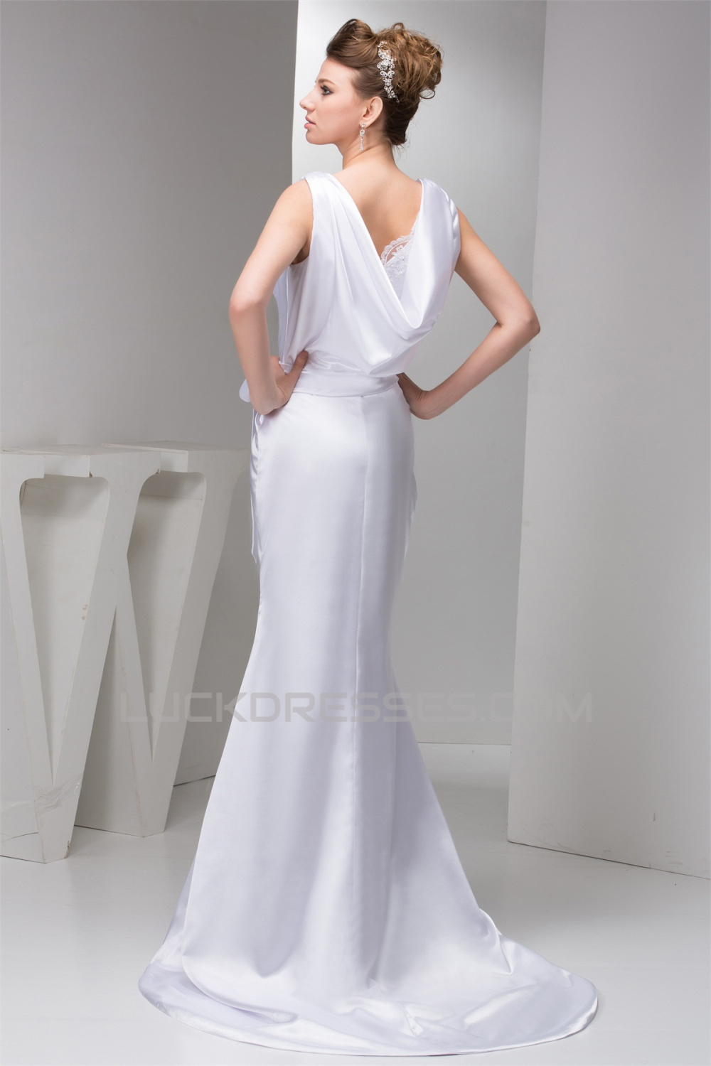 Trumpet/Mermaid Sleeveless Silk like Satin V-Neck Wedding Dresses 2030955