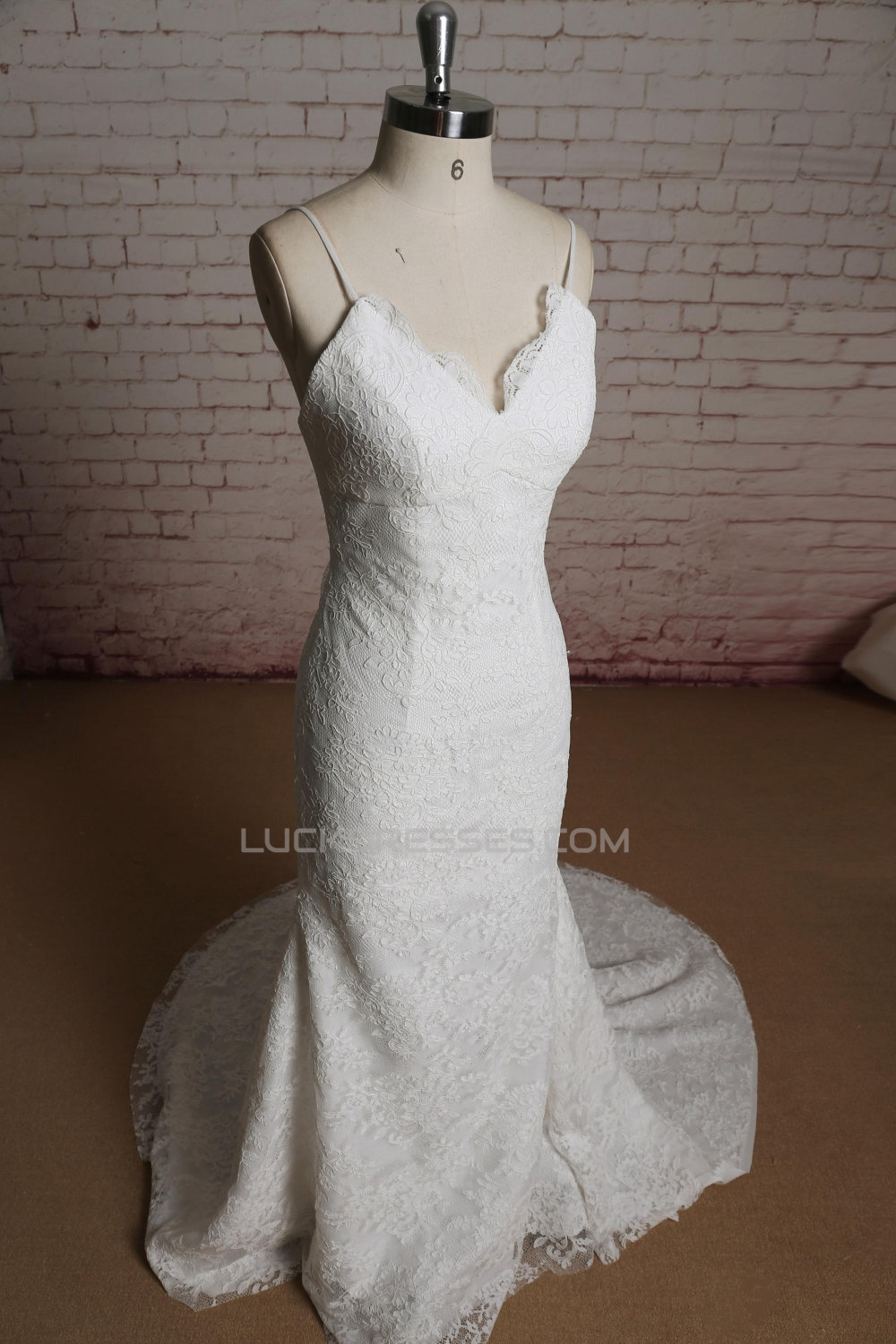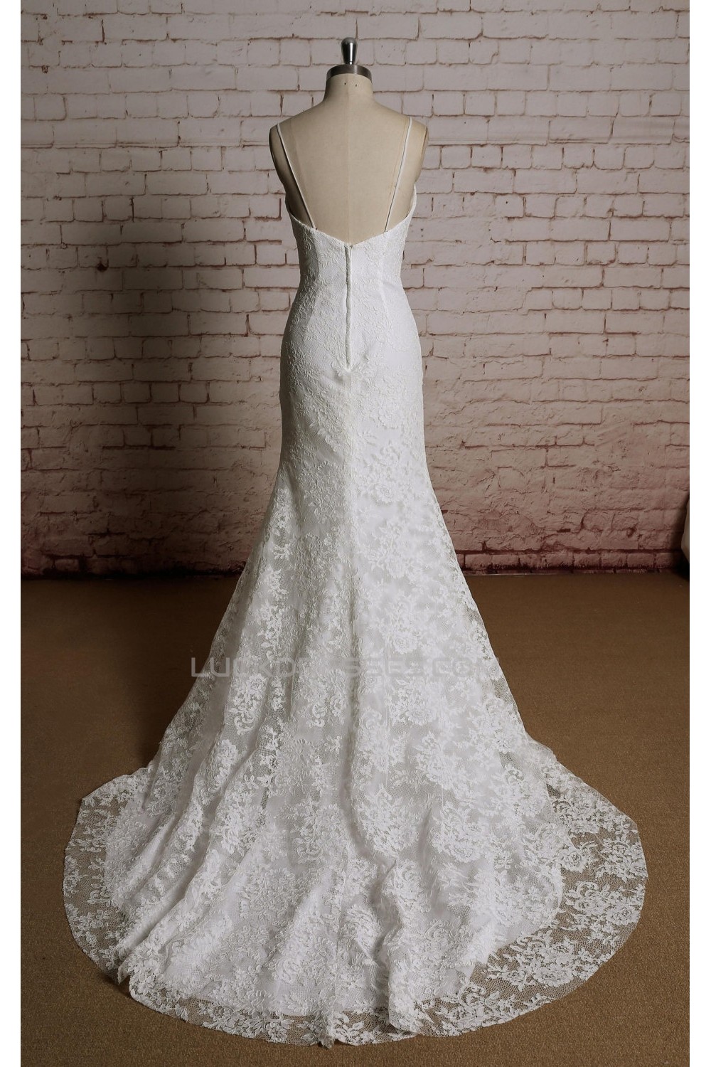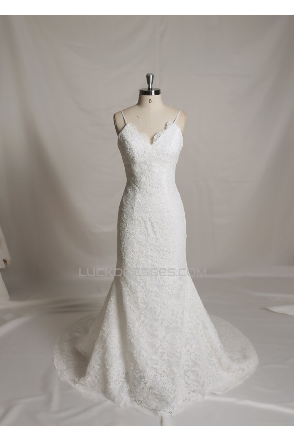 -60% Trumpet/Mermaid Spaghetti Strap Lace Bridal Wedding Dresses WD010684