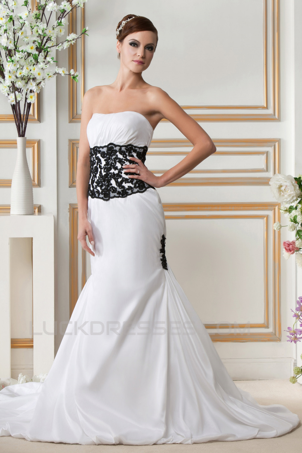 Trumpet/Mermaid Strapless Court Train Black White Wedding Dresses 2031443