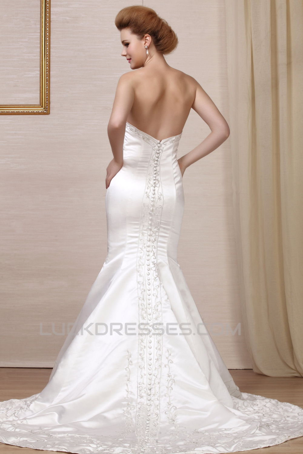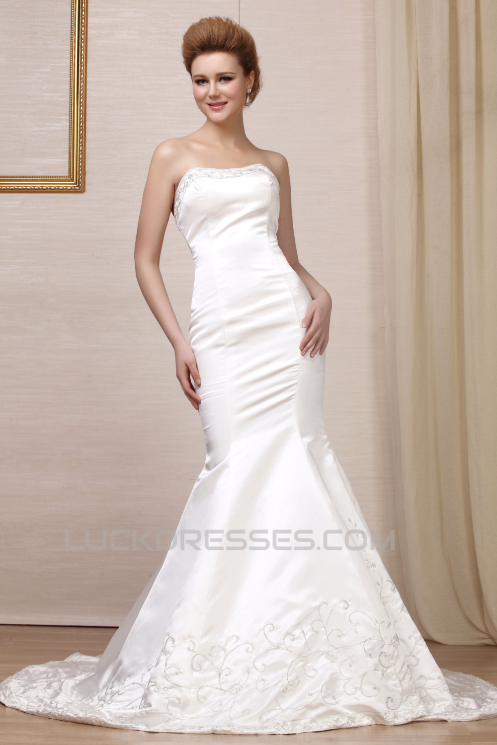 Trumpet/Mermaid Strapless Court Train Wedding Dresses 2031451