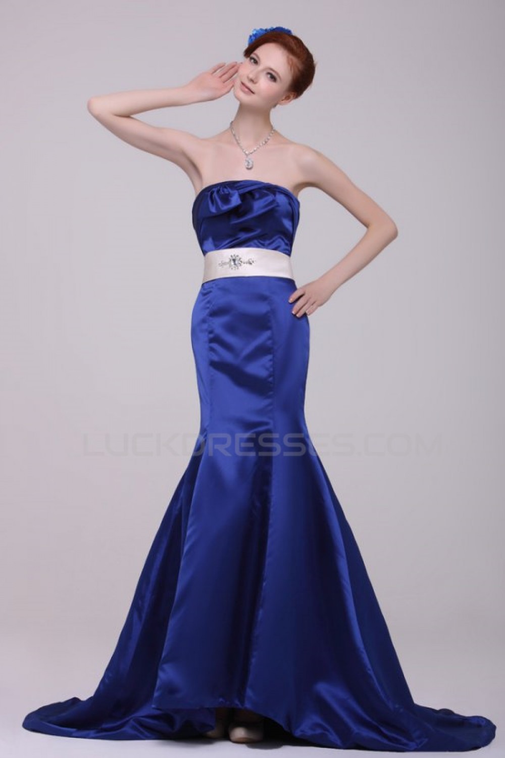 Trumpet/Mermaid Strapless Long Blue Prom Evening Formal Party Dresses ED010127