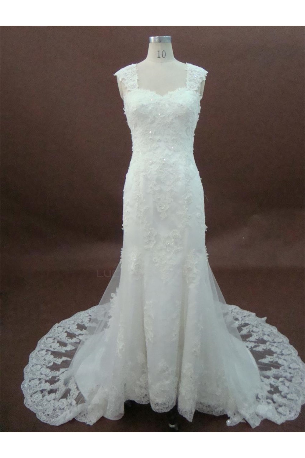 -65% Trumpet/Mermaid Straps Sleeves Court Train Lace Bridal Wedding Dresses WD010162