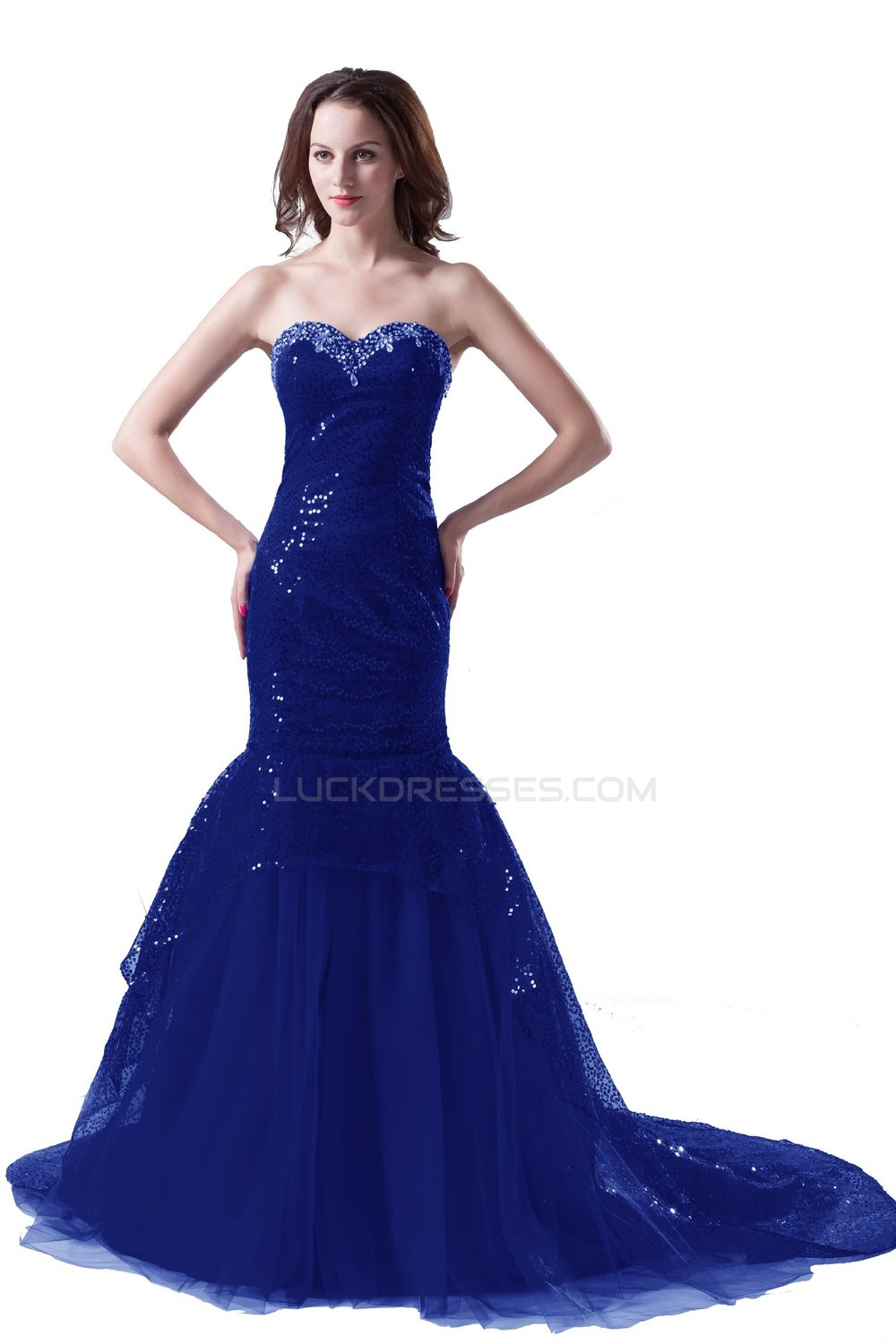 Trumpet/Mermaid Sweetheart Beaded Long Blue Prom Evening Formal Party Dresses ED010276