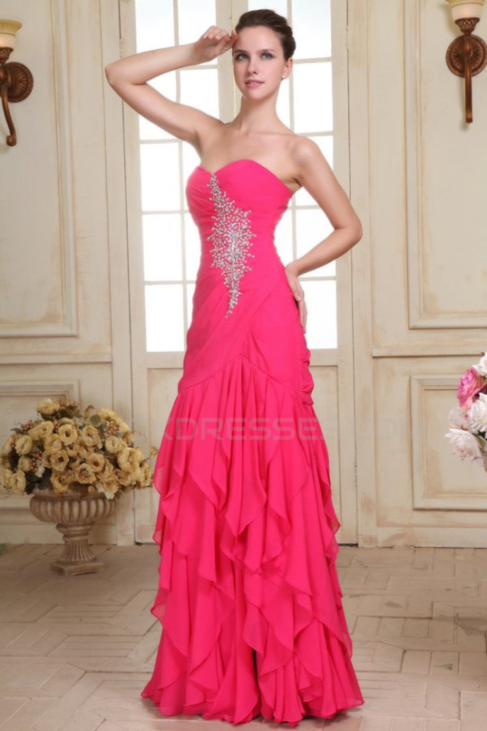 Trumpet/Mermaid Sweetheart Beaded Long Pink Chiffon Prom Evening Formal Party Dresses ED010077