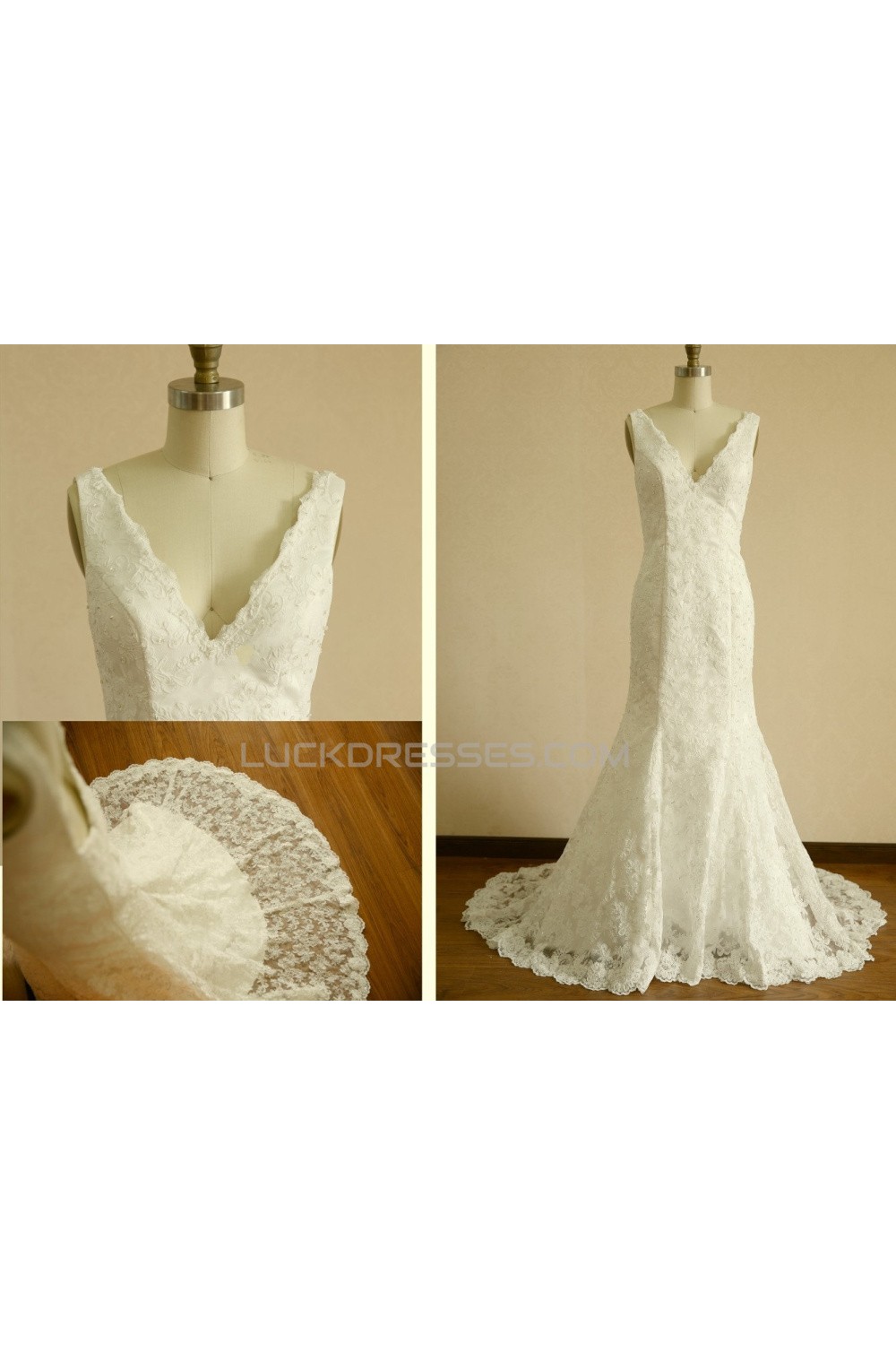 -60% Trumpet/Mermaid V-neck Lace Bridal Wedding Dresses WD010804