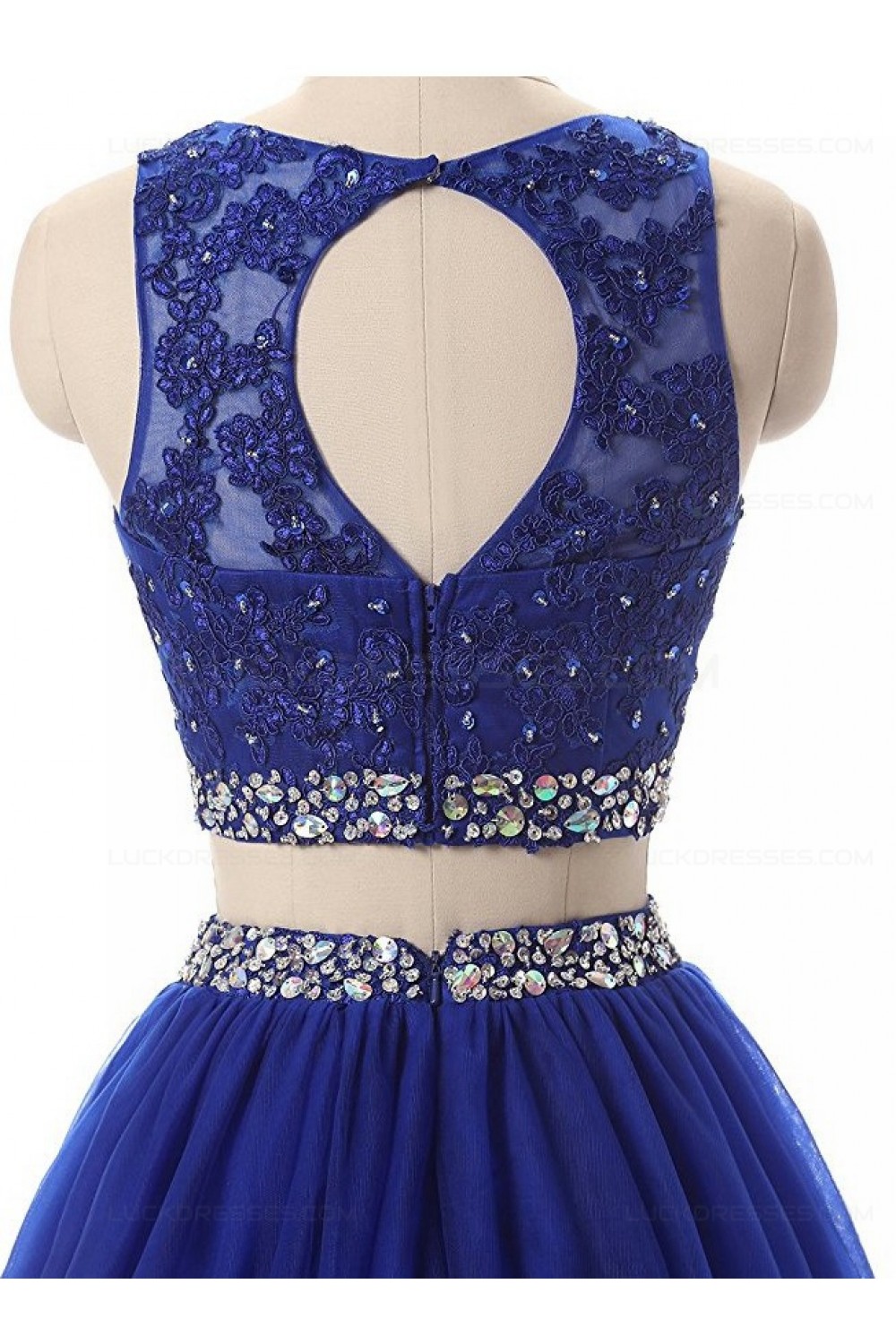 Two Pieces Beaded Lace Appliques Long Blue Prom Dresses Party Evening Gowns 3020380