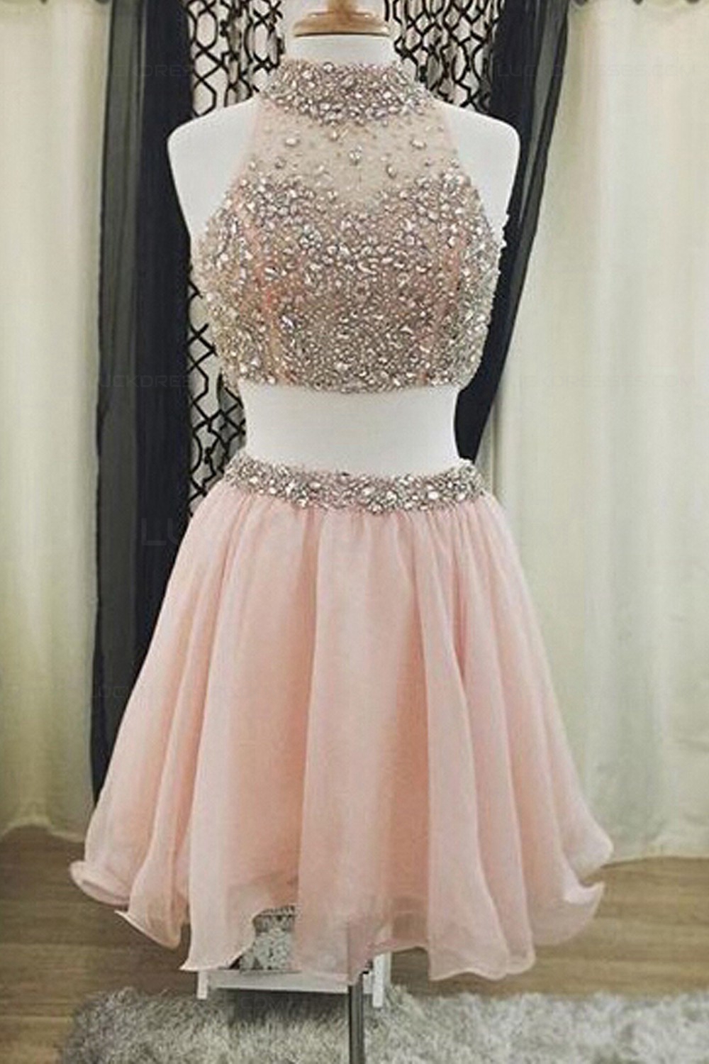 Two Pieces Beaded Short Homecoming Cocktail Prom Dresses 3020373