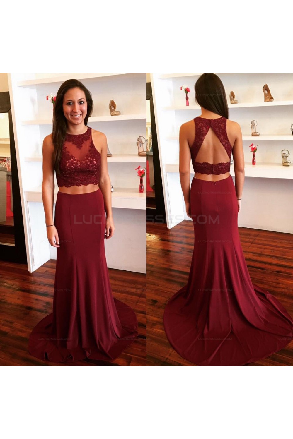 Two Pieces Mermaid Lace Appliques Long Prom Evening Party Dresses 3020653