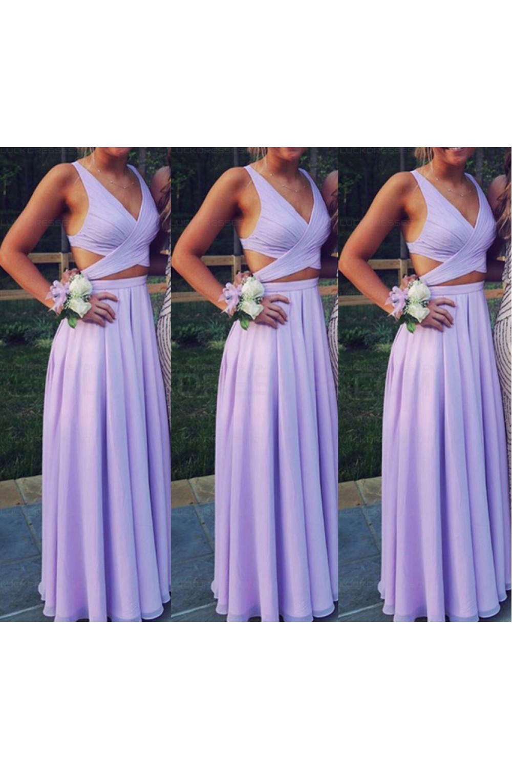Two Pieces V-Neck Chiffon Long Prom Evening Formal Dresses 3021565