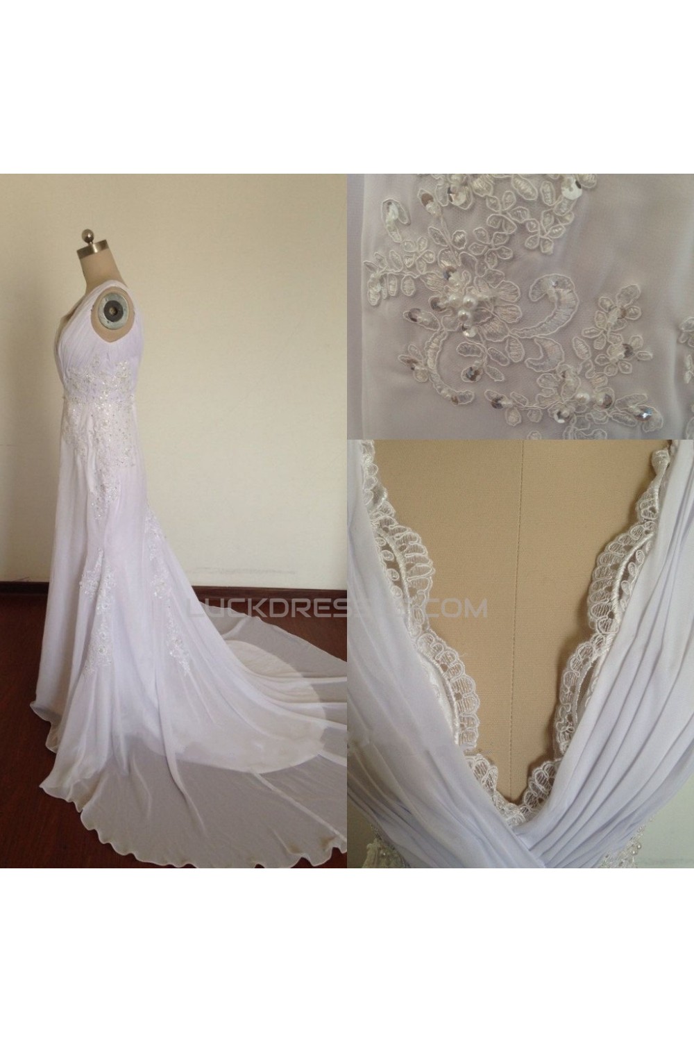 V-neck Lace and Chiffon Bridal Wedding Dresses WD010821