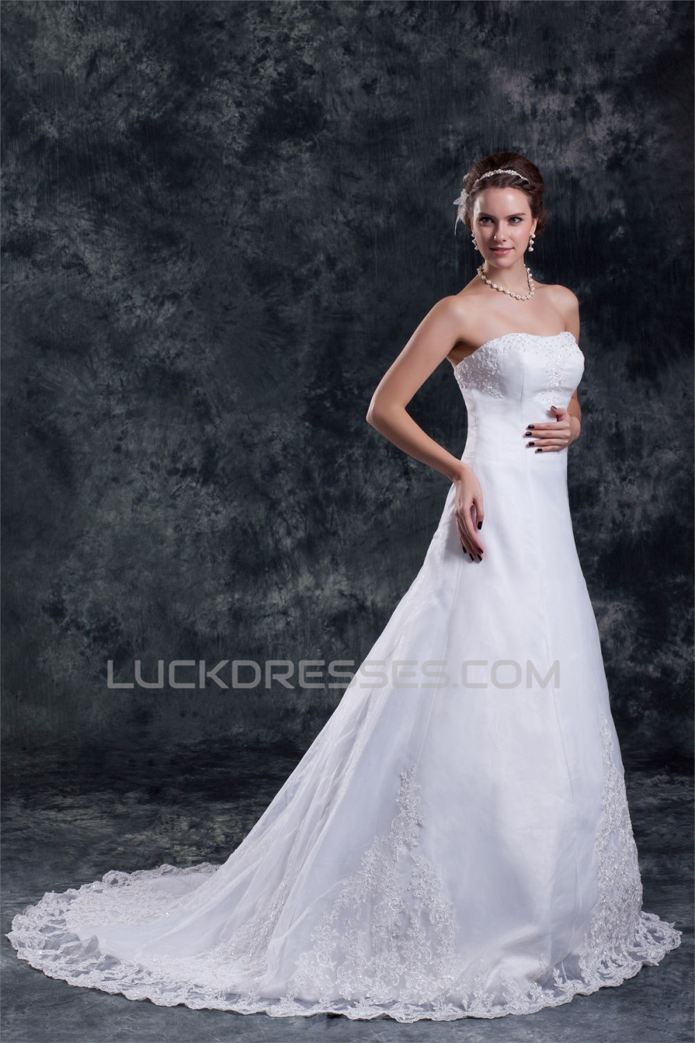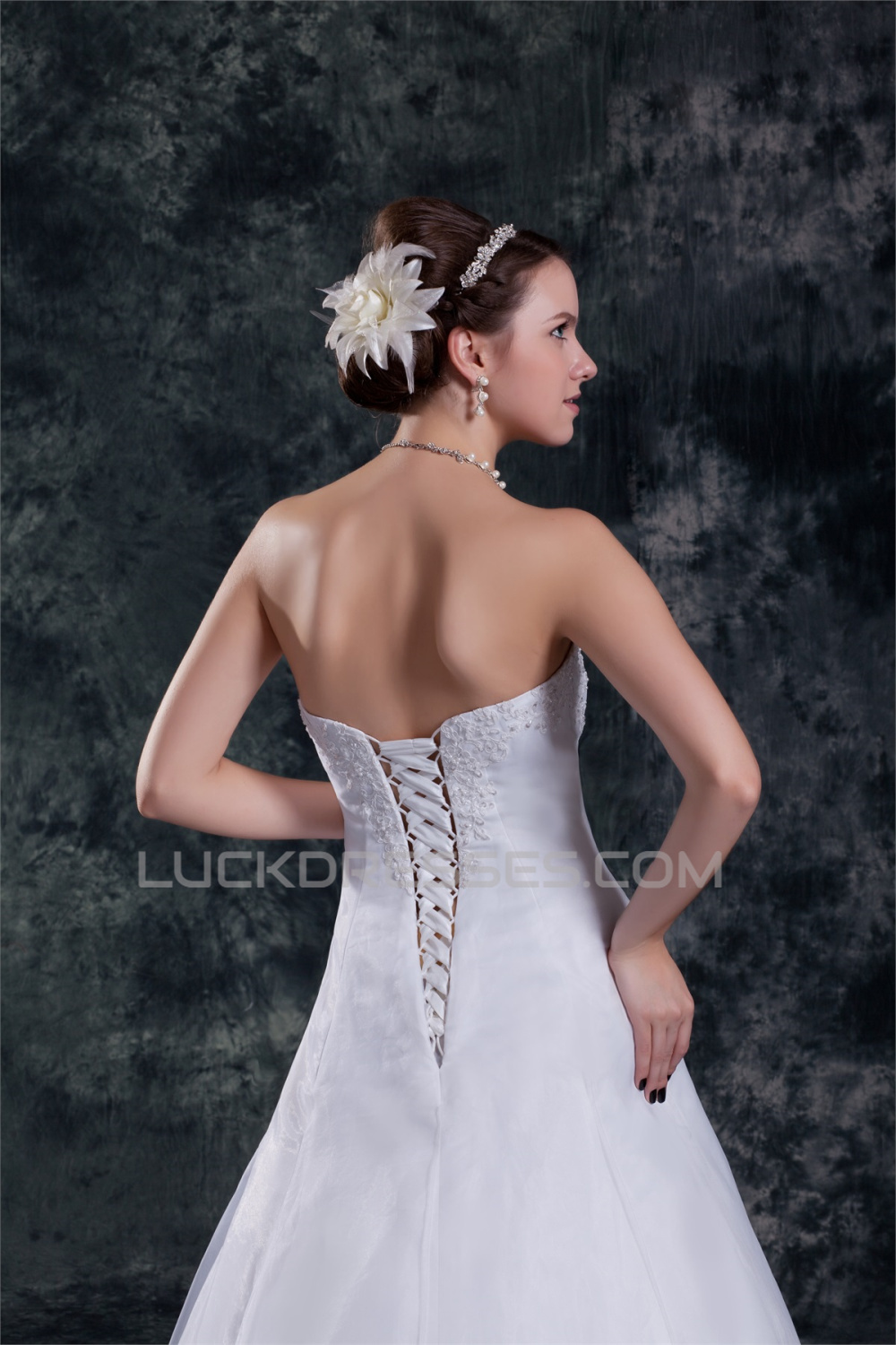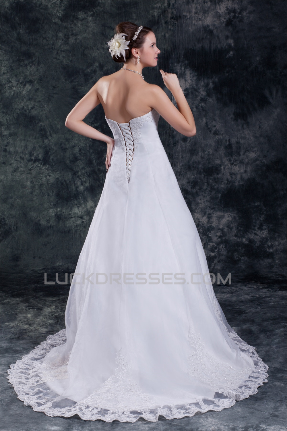 -50% Wholesale A-Line Sleeveless Strapless Satin Organza Wedding Dresses 2031416