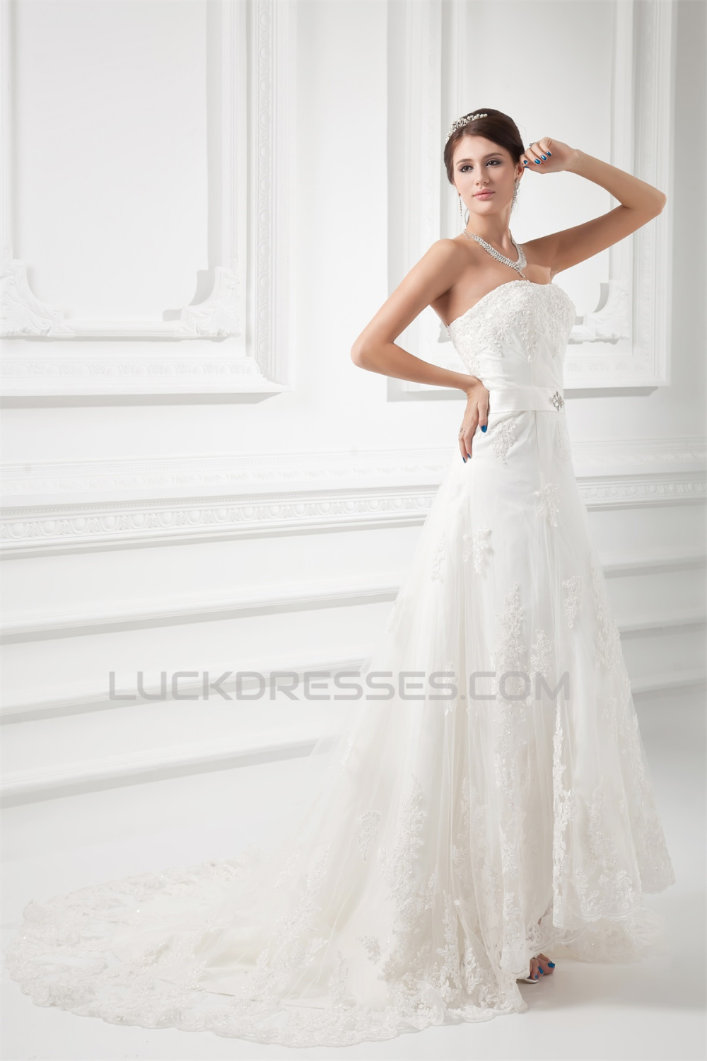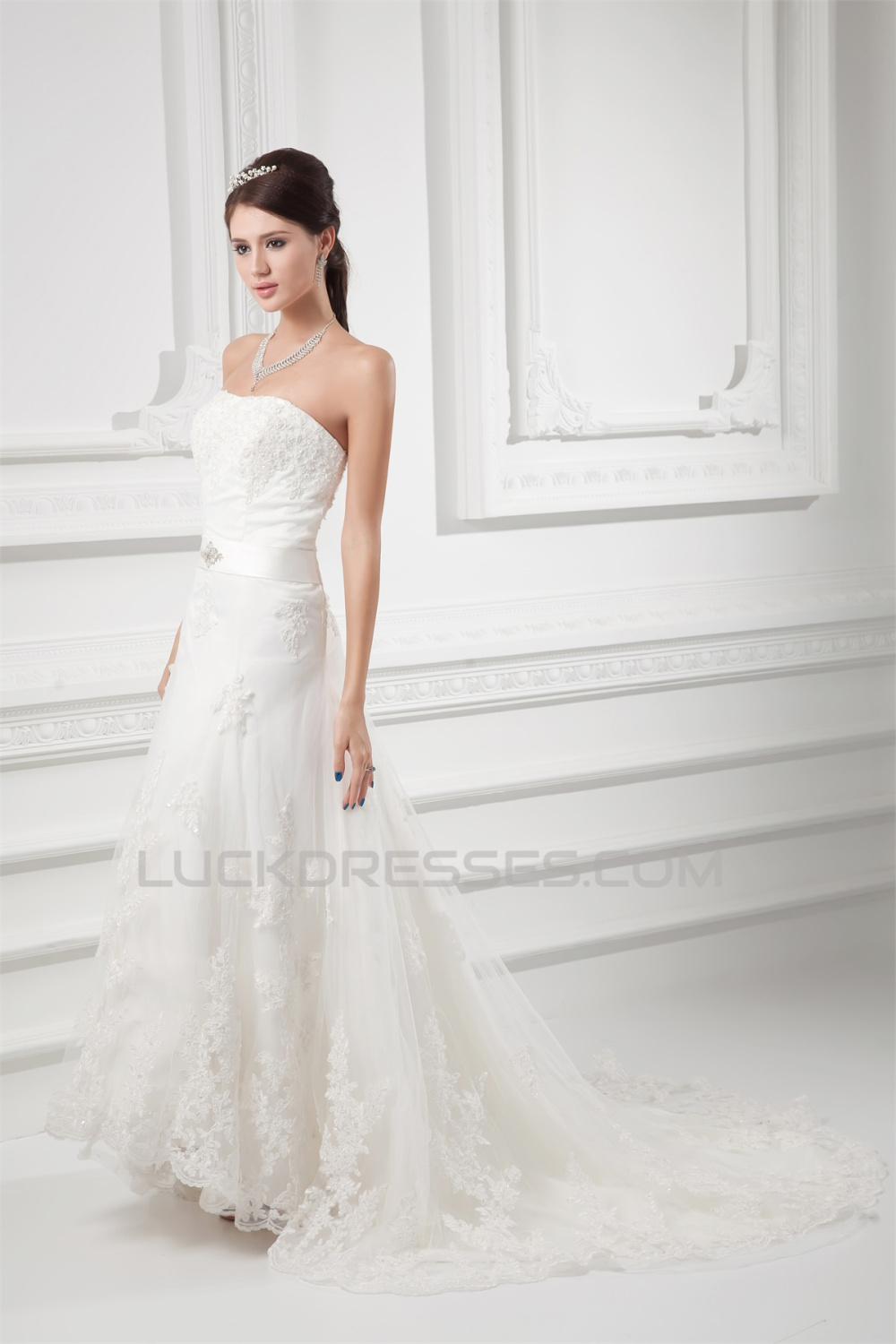 -50% Wholesale Sheath/Column Satin Netting Sleeveless Lace Wedding Dresses 2031418