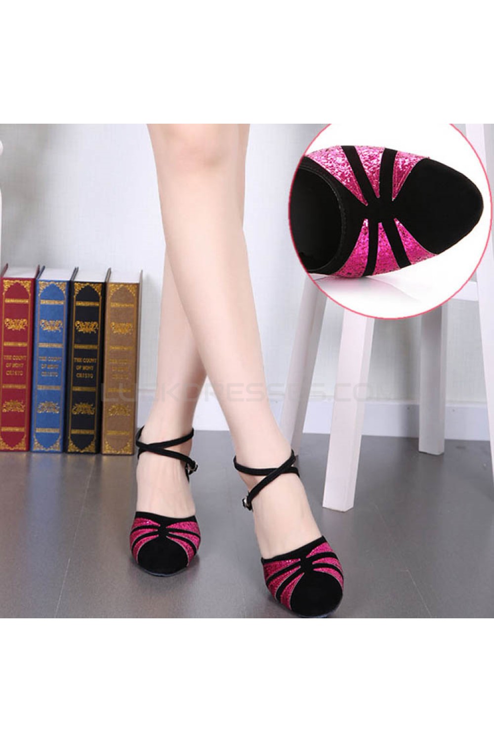 Women's Black Rose Red Sparkling Glitter Heels With Buckle Latin Ballroom/Outdoor Dance Shoes Wedding Party Shoes D801065