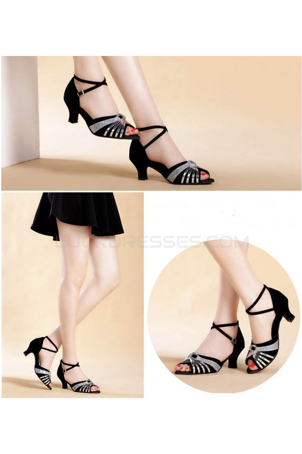 Women's Black Silver Women's Piscine Mouth Shoes Open Toe Modern Ballroom/Latin Dance Shoes D801003