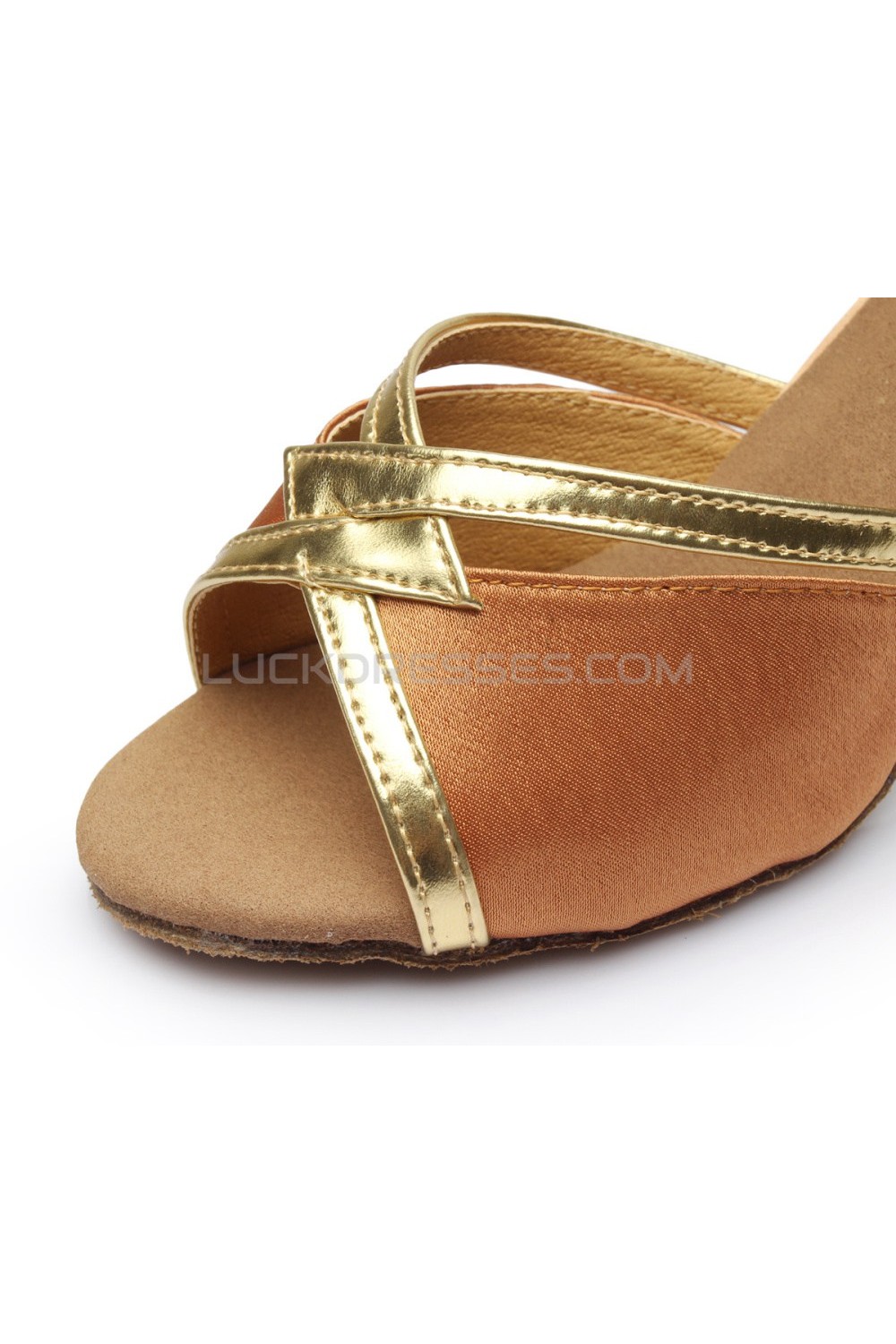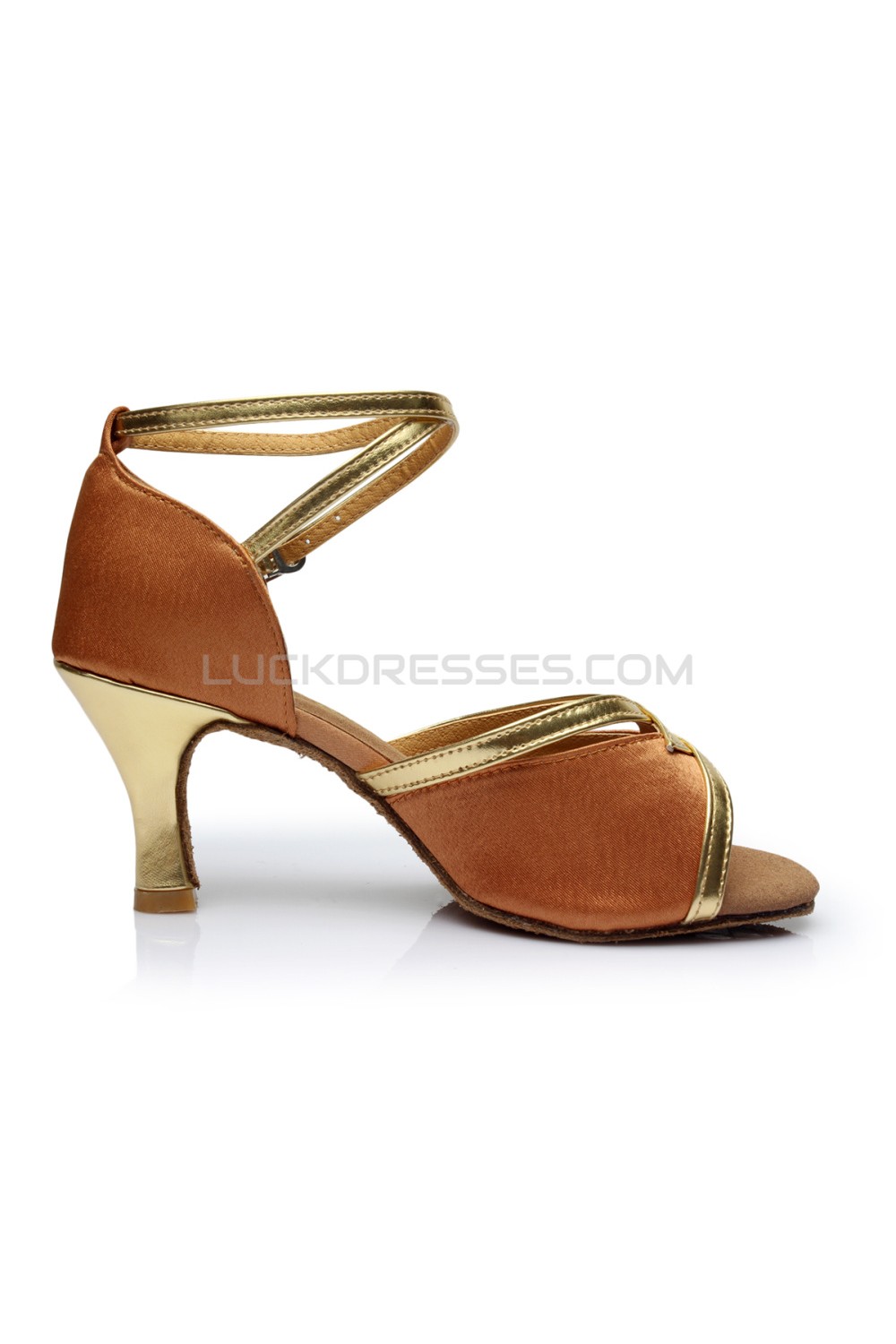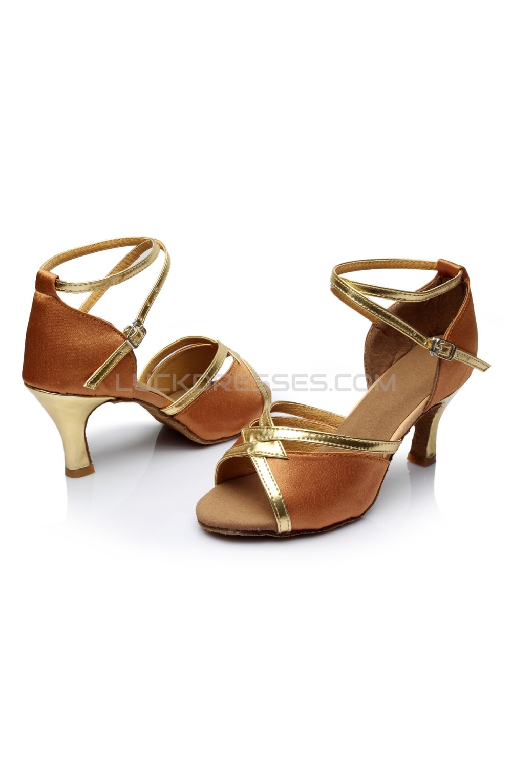 Women's Brown Satin Heels Sandals Latin Salsa With Ankle Strap Dance Shoes D602026
