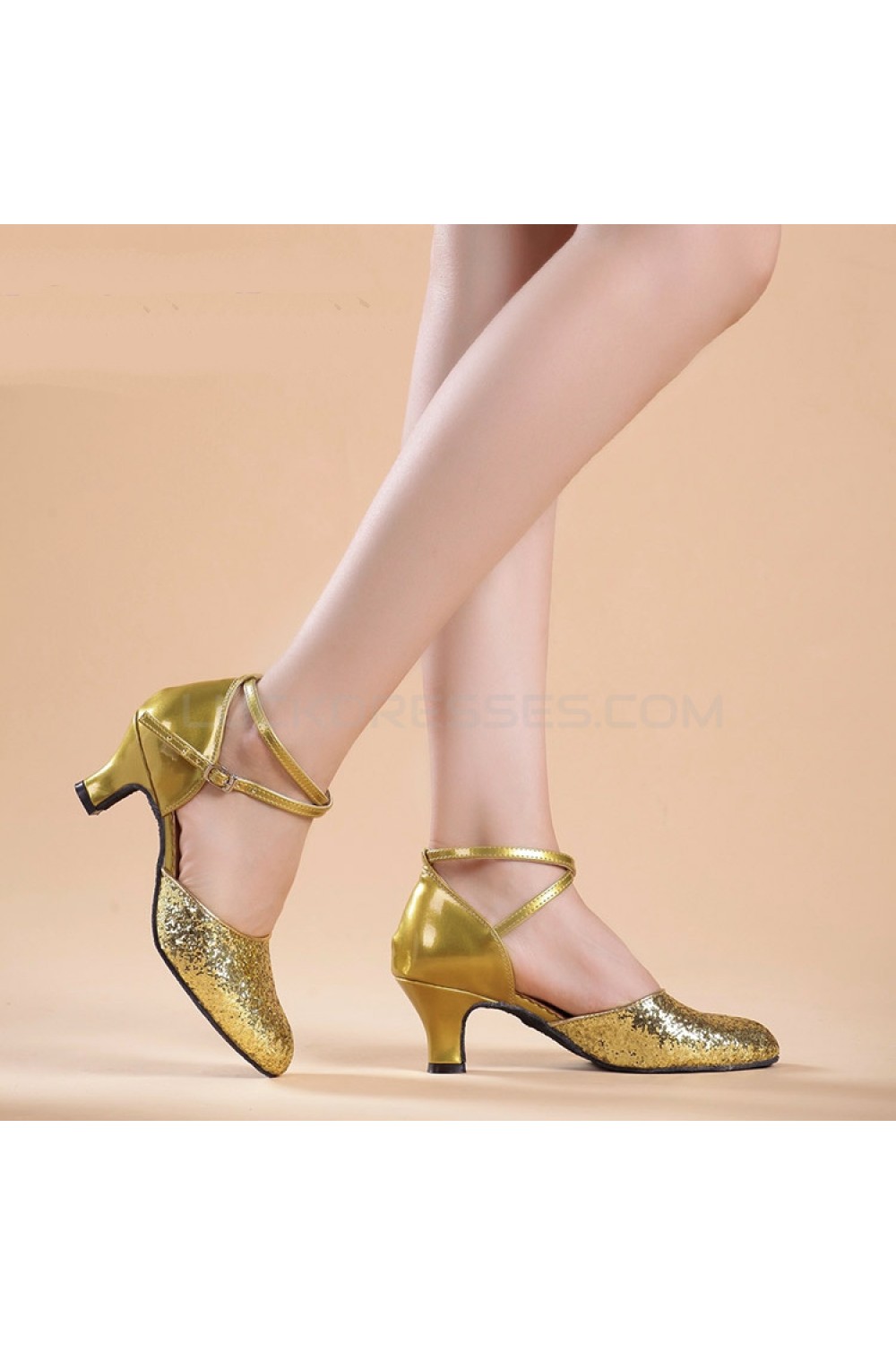 Women's Fashion Gold Sparkling Glitter Heels With Ankle Strap Latin Dance Shoes Wedding Party Shoes D801044