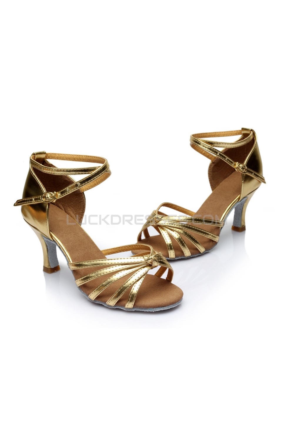 Women's Gold Leatherette Heels Sandals Latin Salsa With Ankle Strap Dance Shoes D602013