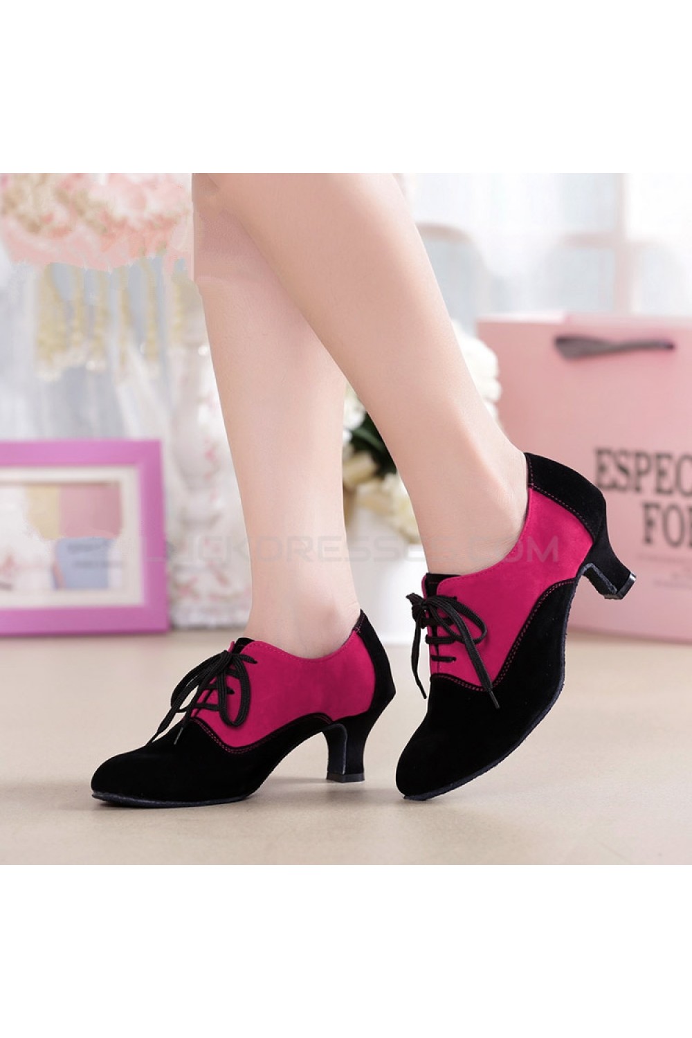 Women's Heels Lace-up Latin Modern Dance Shoes Rose Red Black Wedding Party Shoes D801052