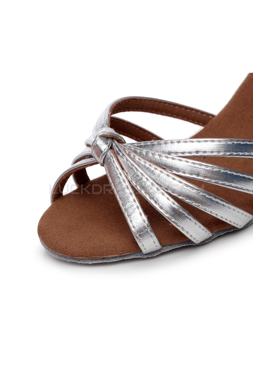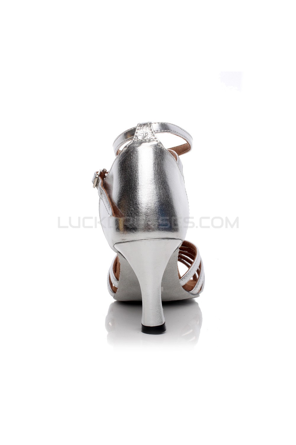 Women's Heels Silver Leatherette Modern Ballroom Latin Salsa Ankle Strap Dance Shoes D901010
