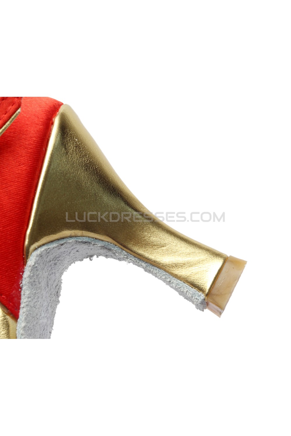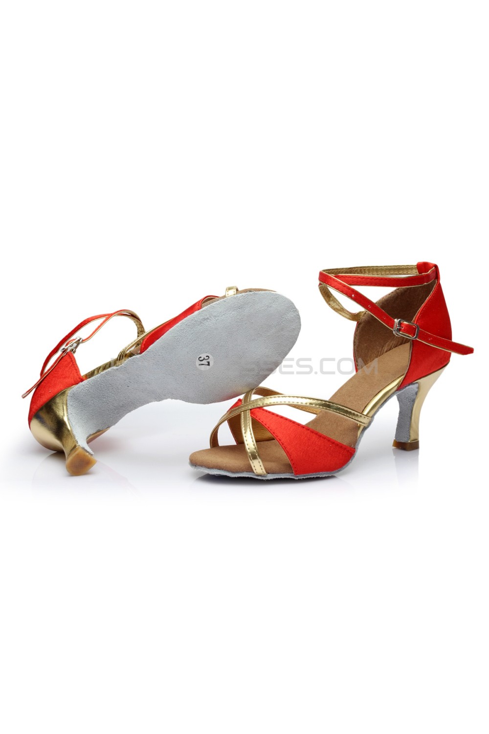 Women's Red Gold Satin Heels Sandals Latin Salsa With Ankle Strap Dance Shoes D602017