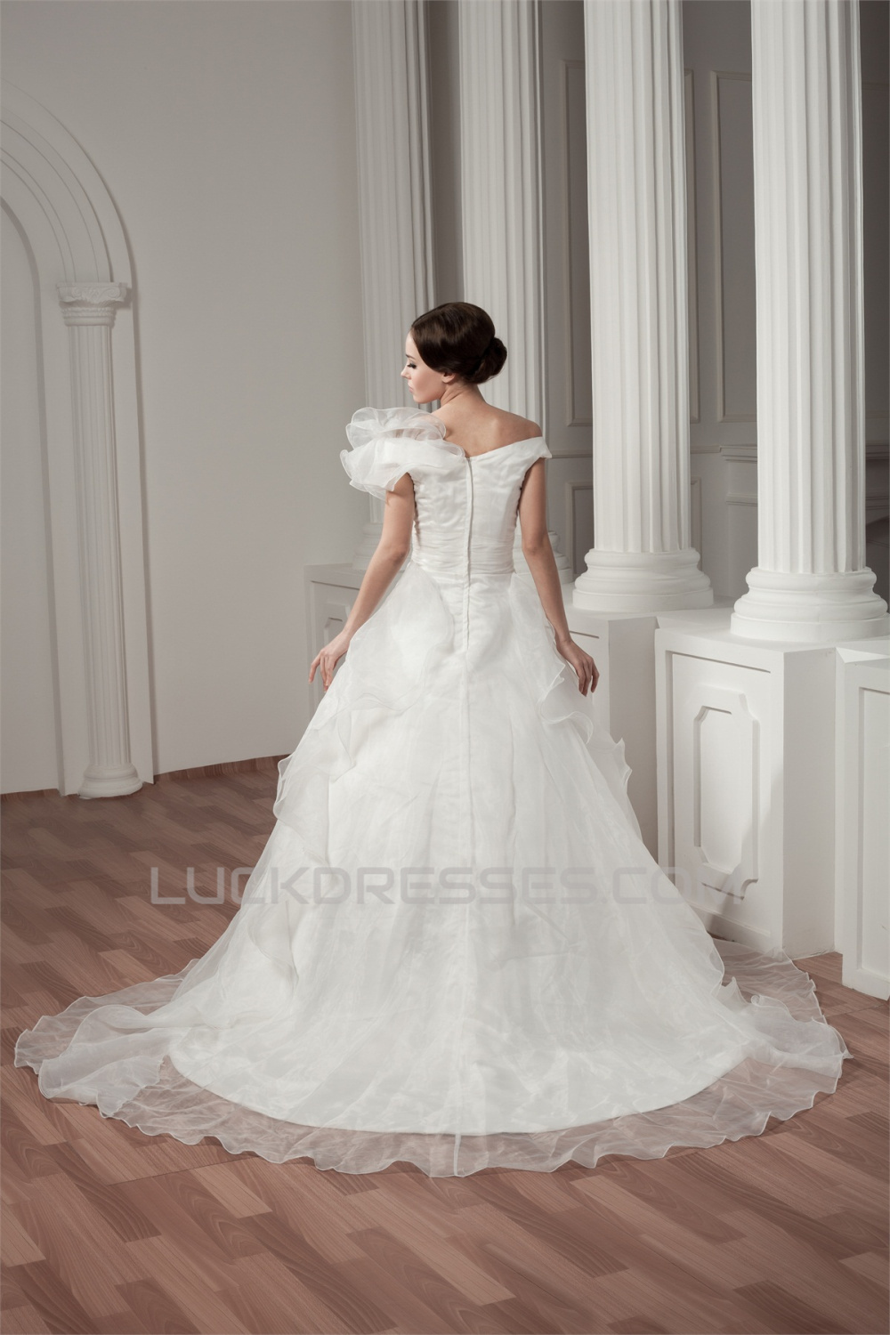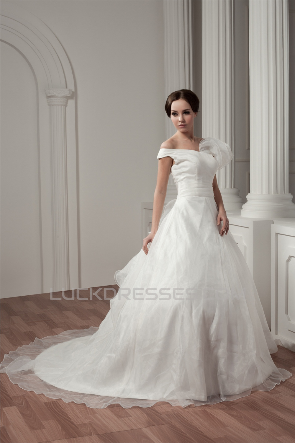 -50% Wonderful Satin Sleeveless A-Line Off-the-Shoulder Wedding Dresses 2031068
