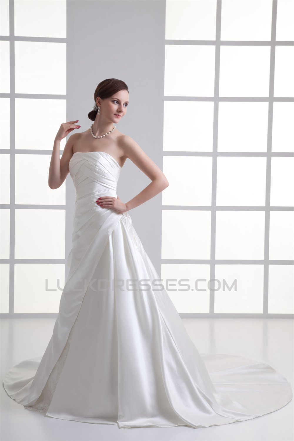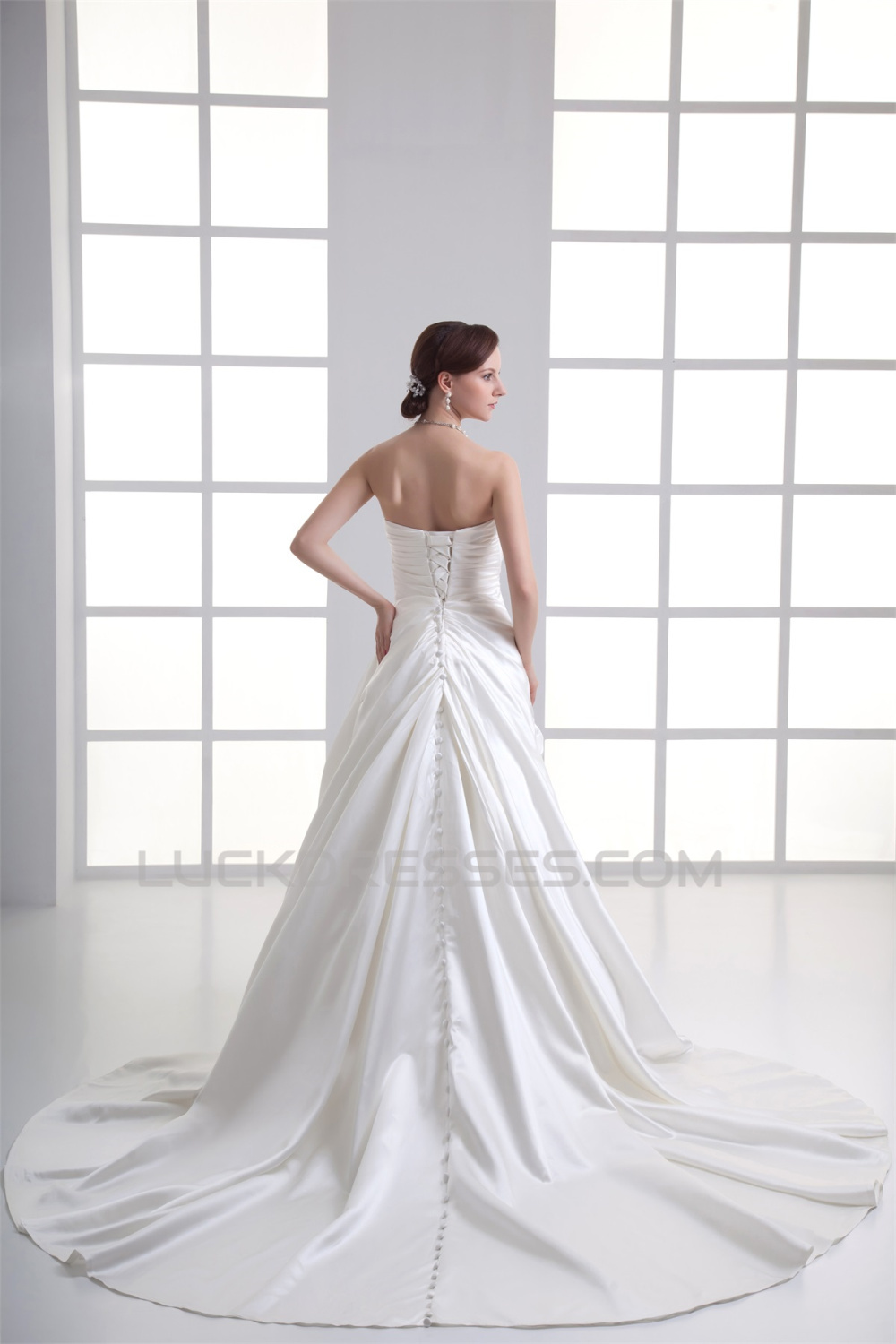 -50% Wonderful Sleeveless Satin Soft Sweetheart A-Line Wedding Dresses 2031430