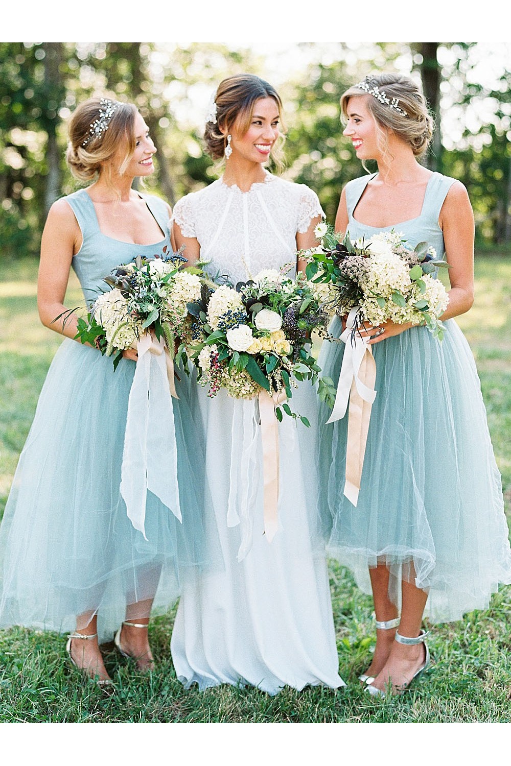 High Low Blue Tulle Bridesmaid Dresses 902054