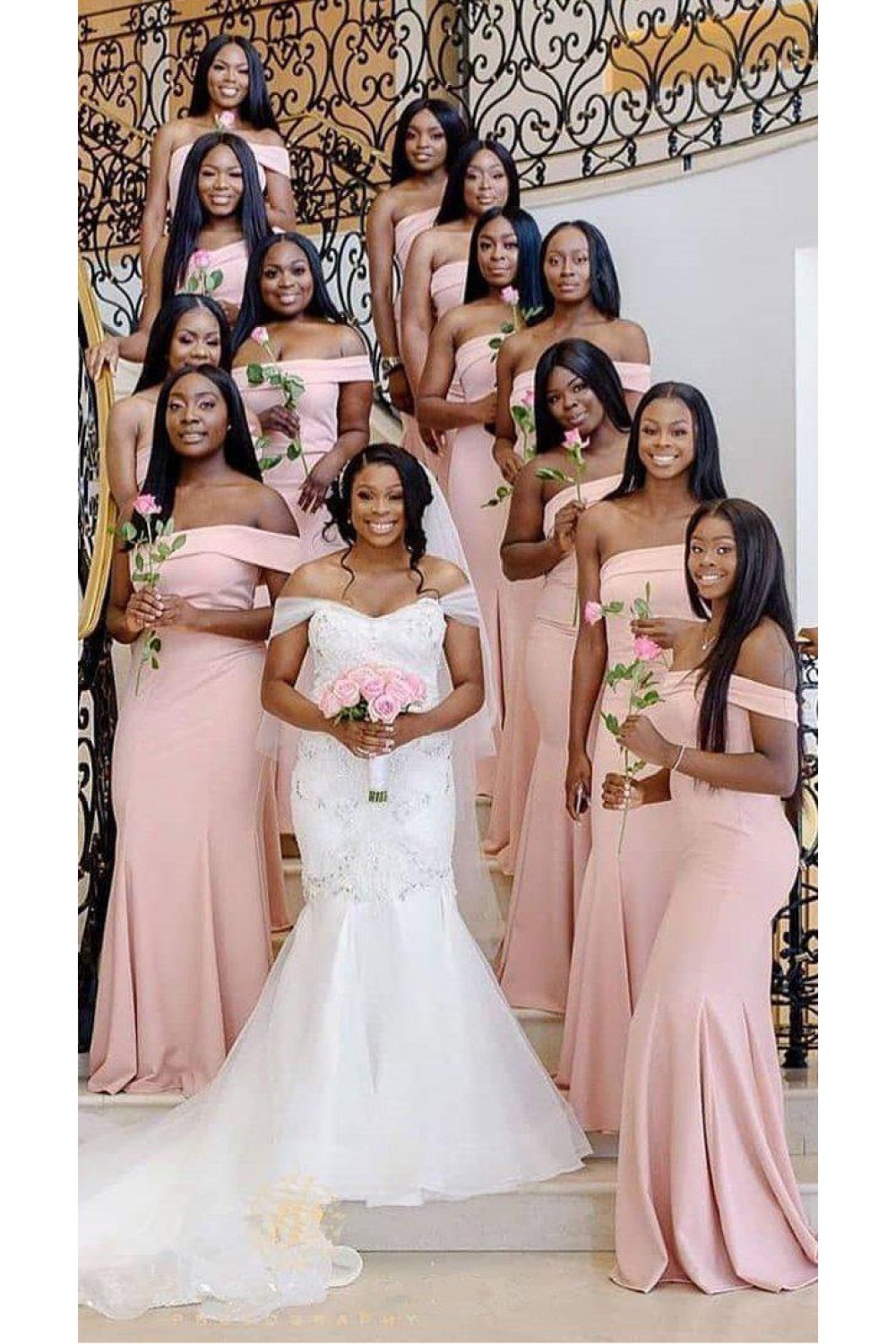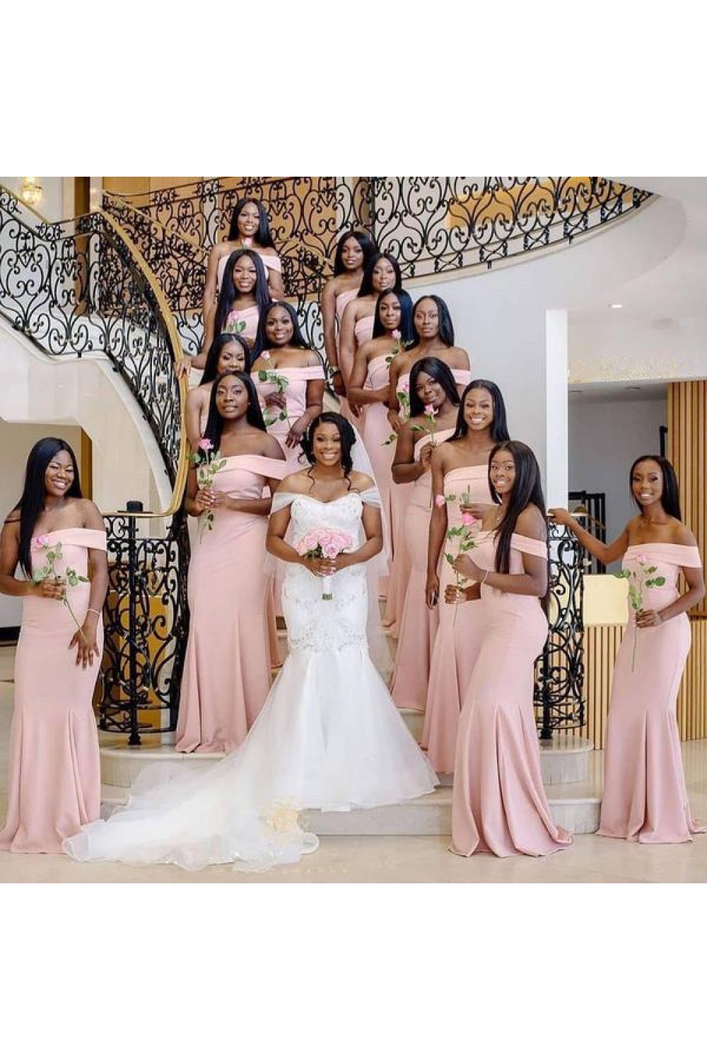 Long Pink Mermaid Floor Length Bridesmaid Dresses 902258