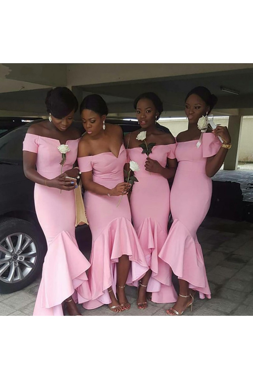 Mermaid Long Pink off the Shoulder Bridesmaid Dresses 902320