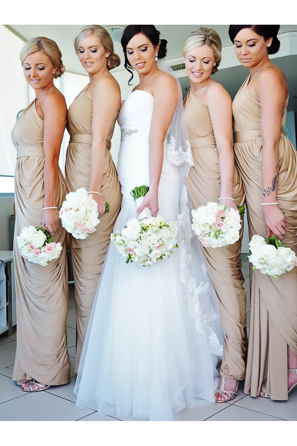 Sheath/Column Long Royal Blue One Shoulder Bridesmaid Dresses 902056